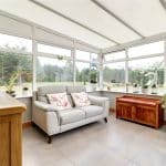 With surrounding uPVC double glazed windows, rear uPVC double glazed entrance door and polycarbonate sloped ceiling and tiled flooring.