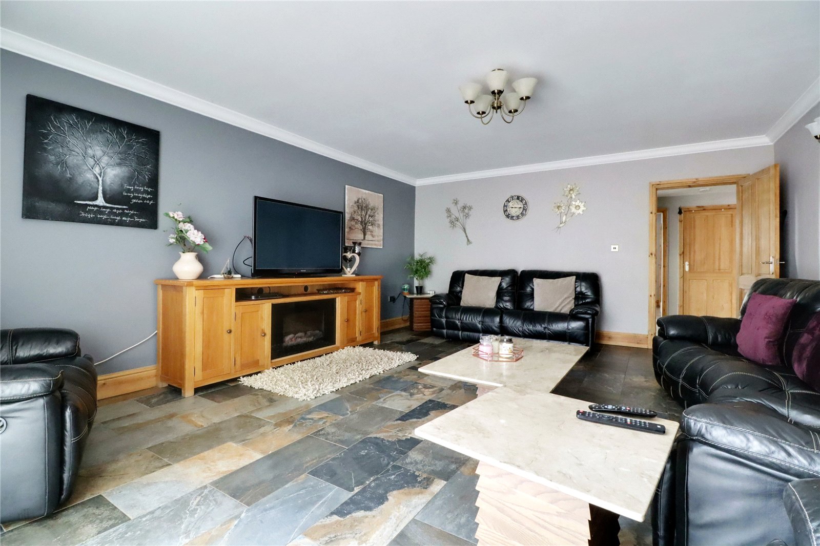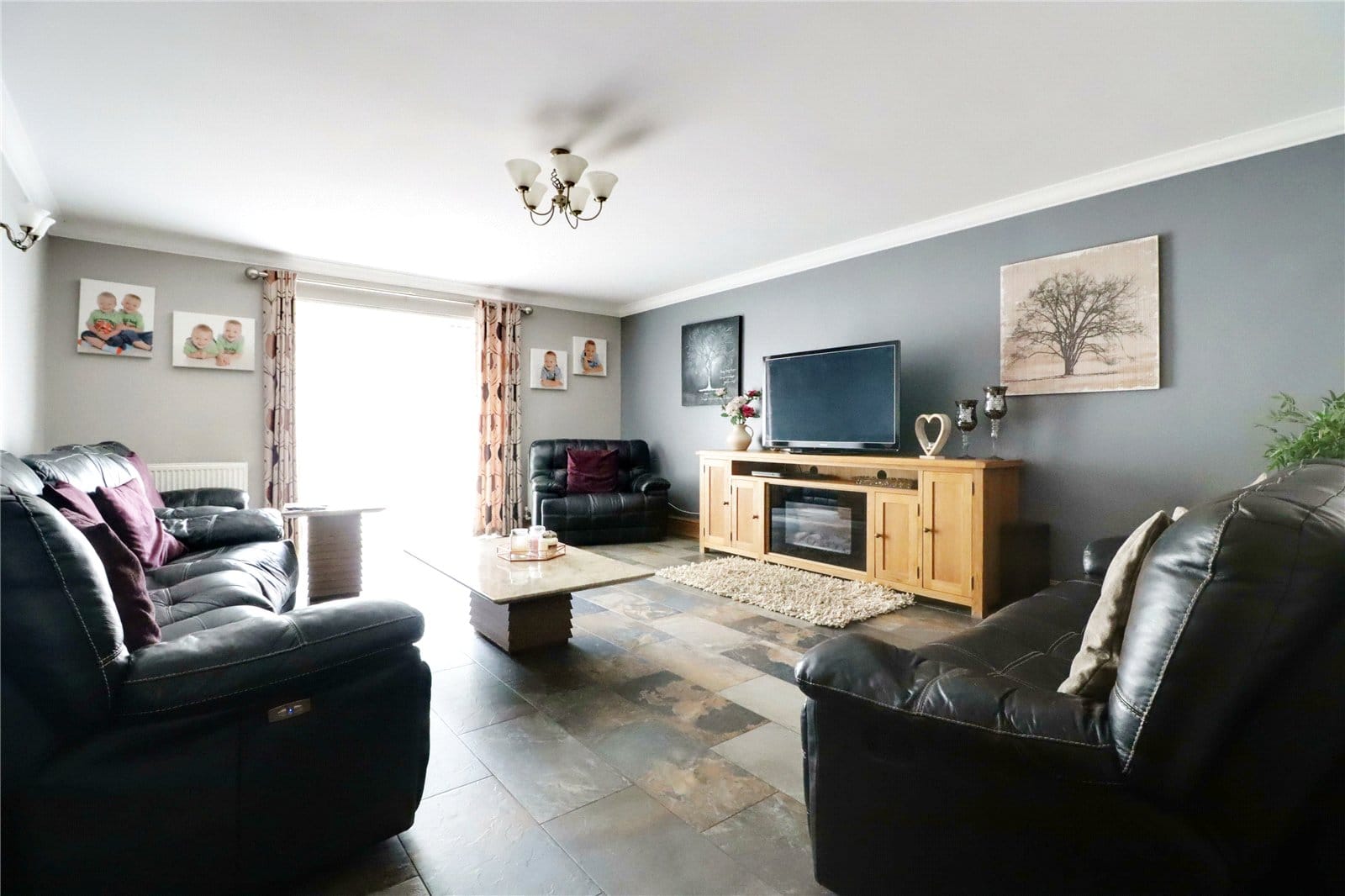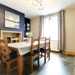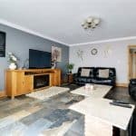 With rear uPVC double glazed French doors and adjoining window, slate tiled flooring, TV point and wall to ceiling coving.