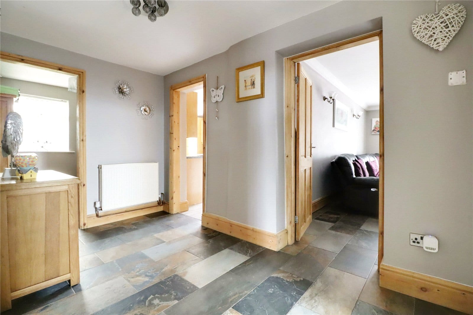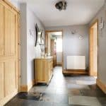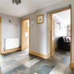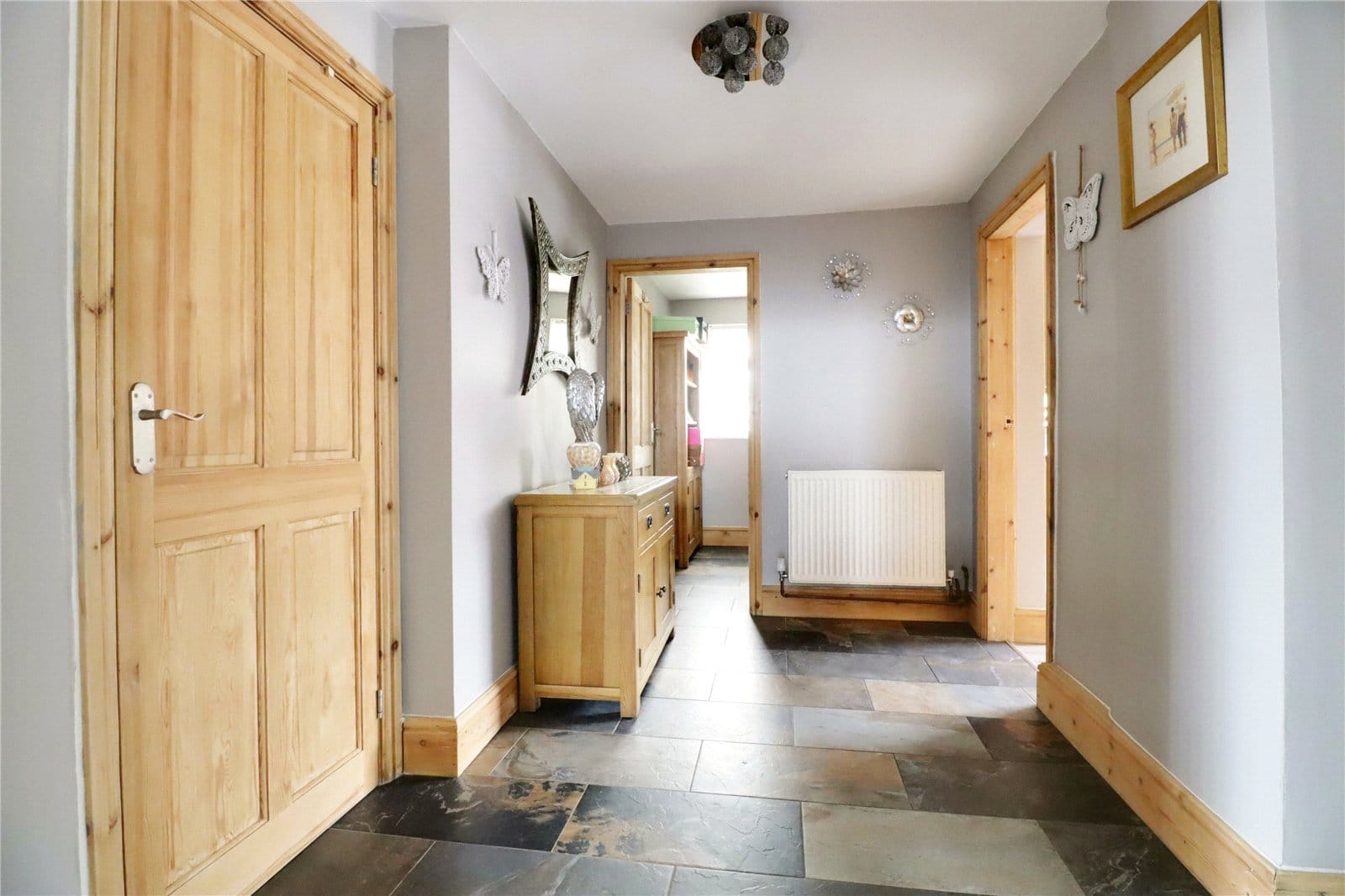 With understairs storage cupboard, continuation of slate tiled flooring and allows access to the main living room, kitchen, study and ground floor shower room.