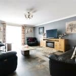 Front uPVC double glazed window, laminate flooring, wall to ceiling coving and double wall lights.