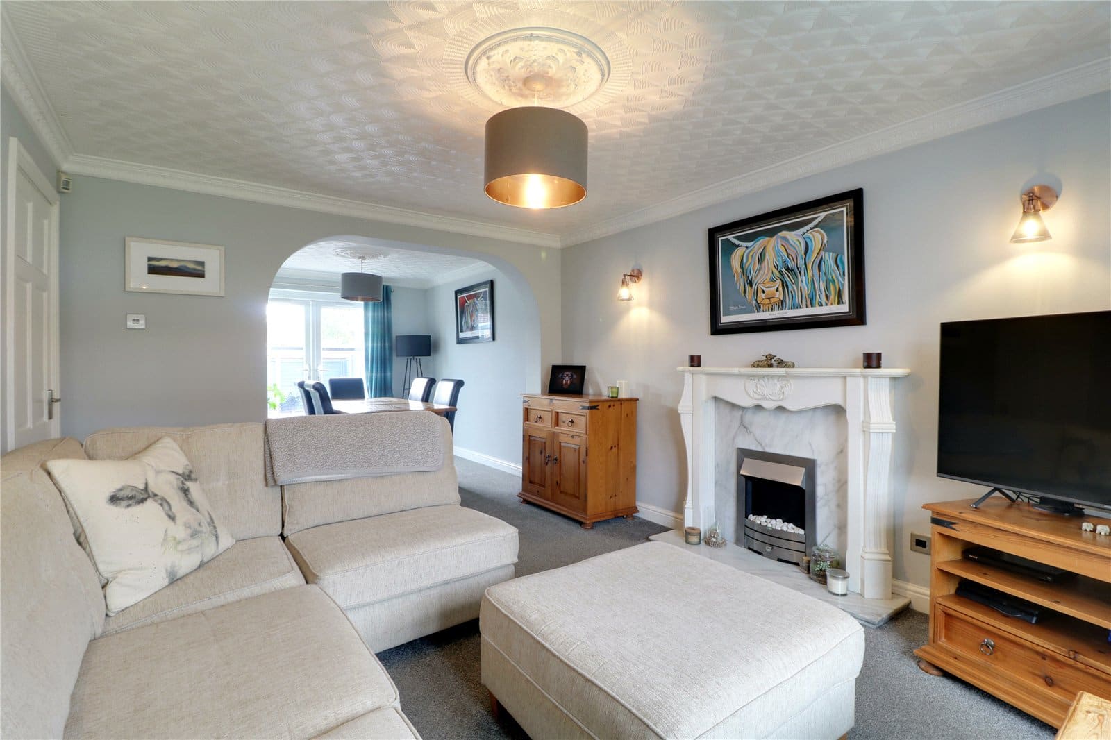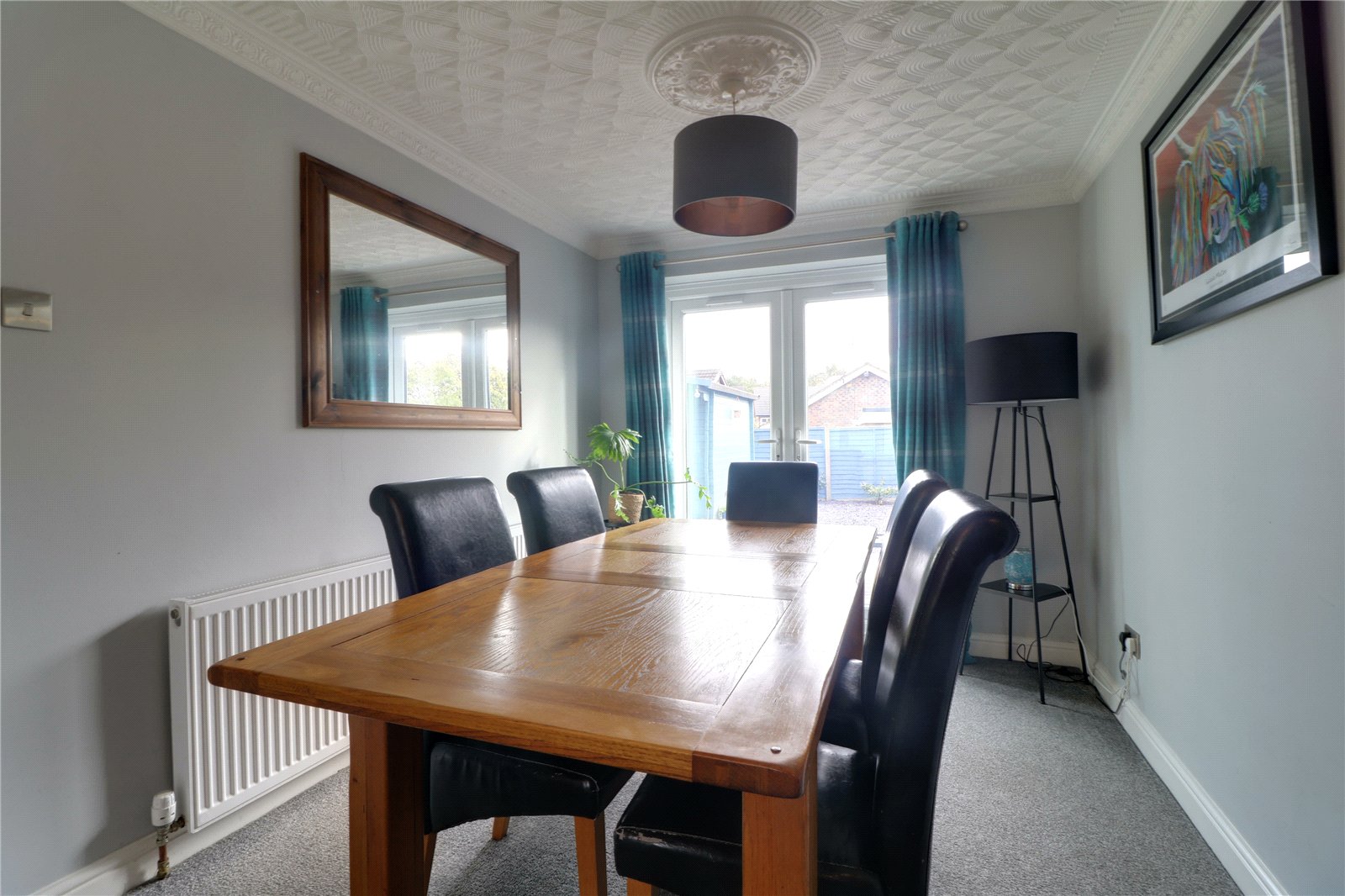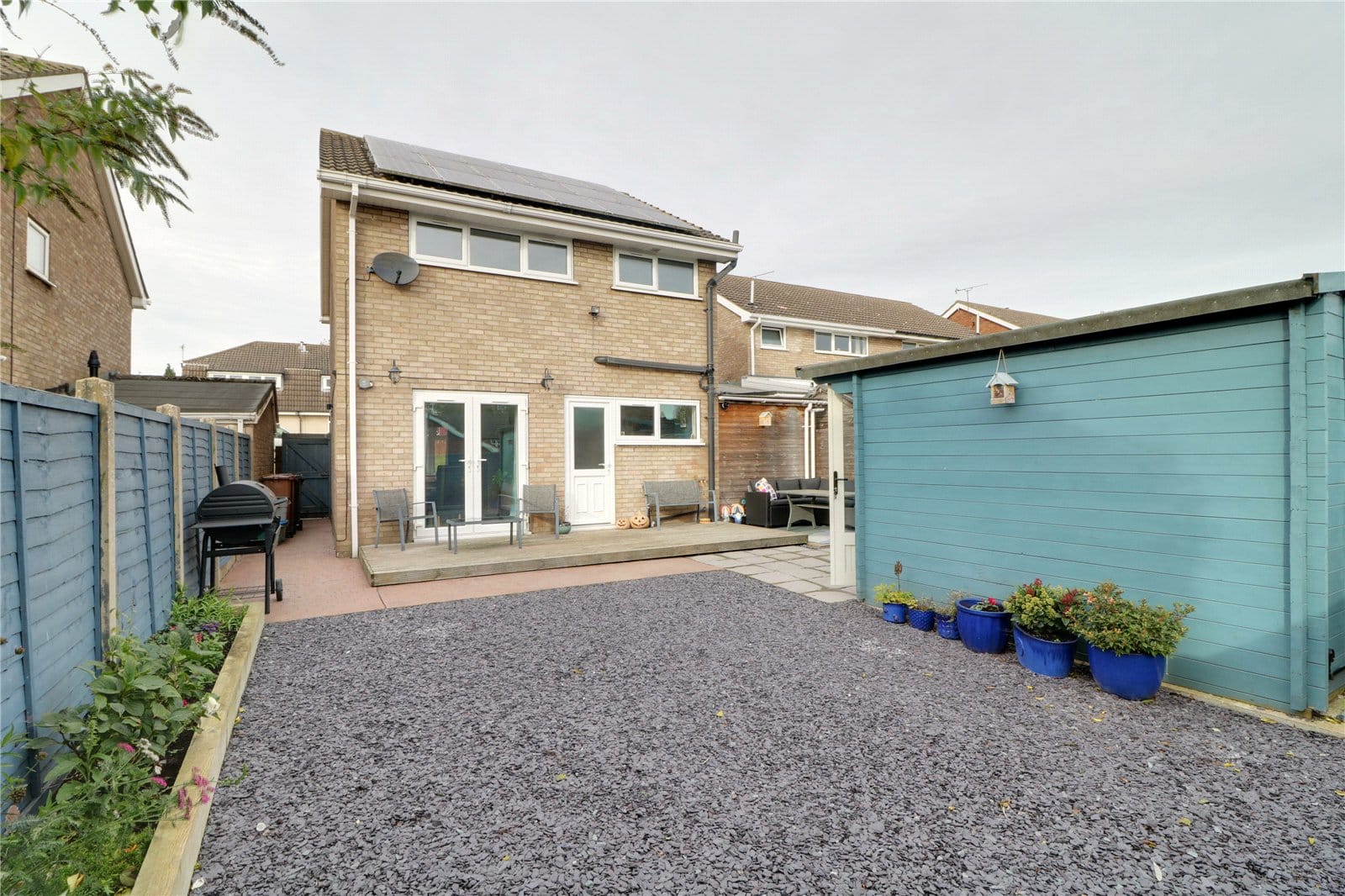 CUL-DE-SAC LOCATION WELL PRESENTED ACCOMMODATION THROUGHOUT PRIVATE SOUTH FACING GARDEN A traditional detached family home, set within a well-established cul-de-sac position in the popular township of Broughton. The well presented and proportioned accommodation has been fully improved throughout and is thought an ideal purchase for a young family or couple. Entering the property, you have a generous hallway allowing access to a spacious lounge through dining room with twin French doors out to the rear garden. The stylish fitted modern kitchen completes the ground floor with modern shaker units and laminate work surfaces, as well as an integrated oven, hob and extractor fan. The first floor provides a central landing leading off to three sizable bedrooms all served by an attractive family bathroom suite. Occupying a private enclosed low maintenance garden with both raised decked and flagged patio area ideal for entertaining friends and family during the summer months. The garden also provides a fantastic timber framed outbuilding with power and lighting and can be utilised usefully as a home office, gym or summer house. To the front of the property enjoys a large driveway complete with a spacious garage allowing parking for multiple vehicles along with an adjoining lawned garden. Full uPVC double glazing, gas fired central heating & solar panels. EPC Rating: B, Council Tax Band: B. Viewing comes highly recommended via our Brigg office. 01652 651777.