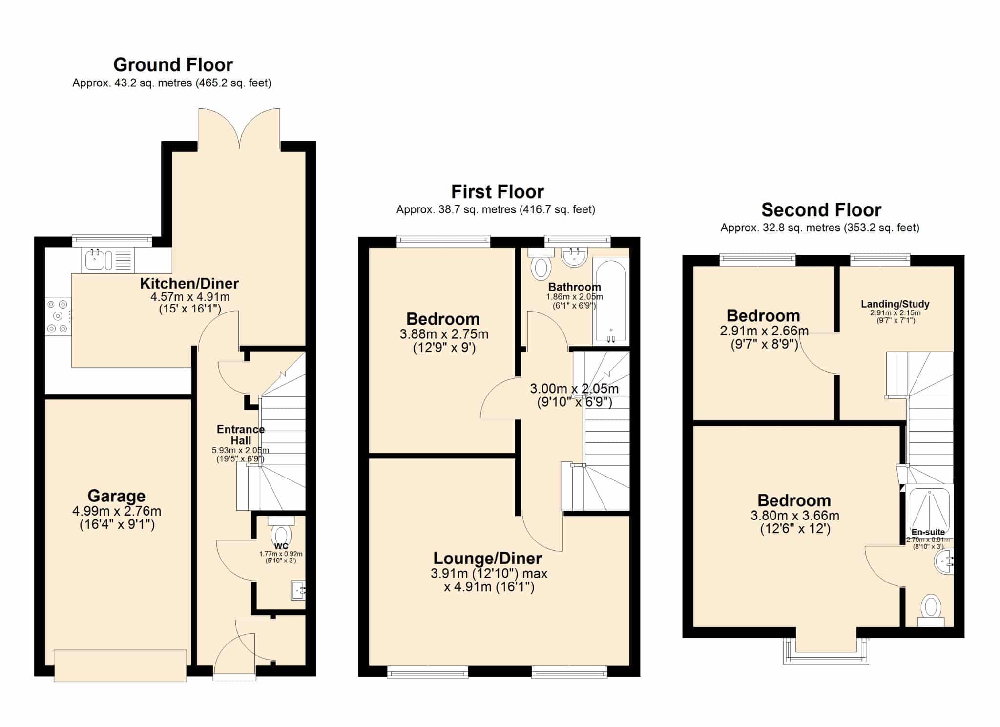The accommodation briefly comprises a welcoming and generous entrance hall with useful built-in storage cupboards, a stylish open-plan kitchen diner that forms the heart of the home and provides an ideal space for everyday living and entertaining, and a convenient ground floor WC. To the first floor is an impressive and spacious lounge diner, a well-proportioned double bedroom and a contemporary family bathroom. The second floor offers a superb master bedroom complete with en-suite shower room, a further sizeable bedroom, and a versatile landing area flooded with natural light via a Velux window, ideal for use as a home office, reading nook or study space.