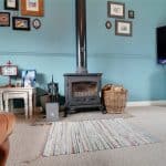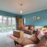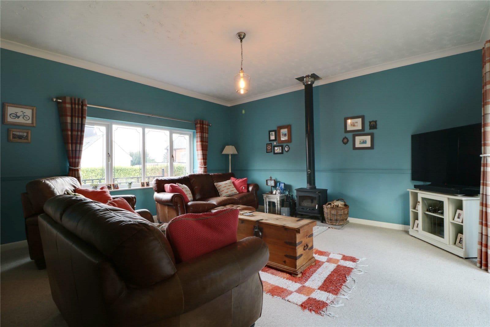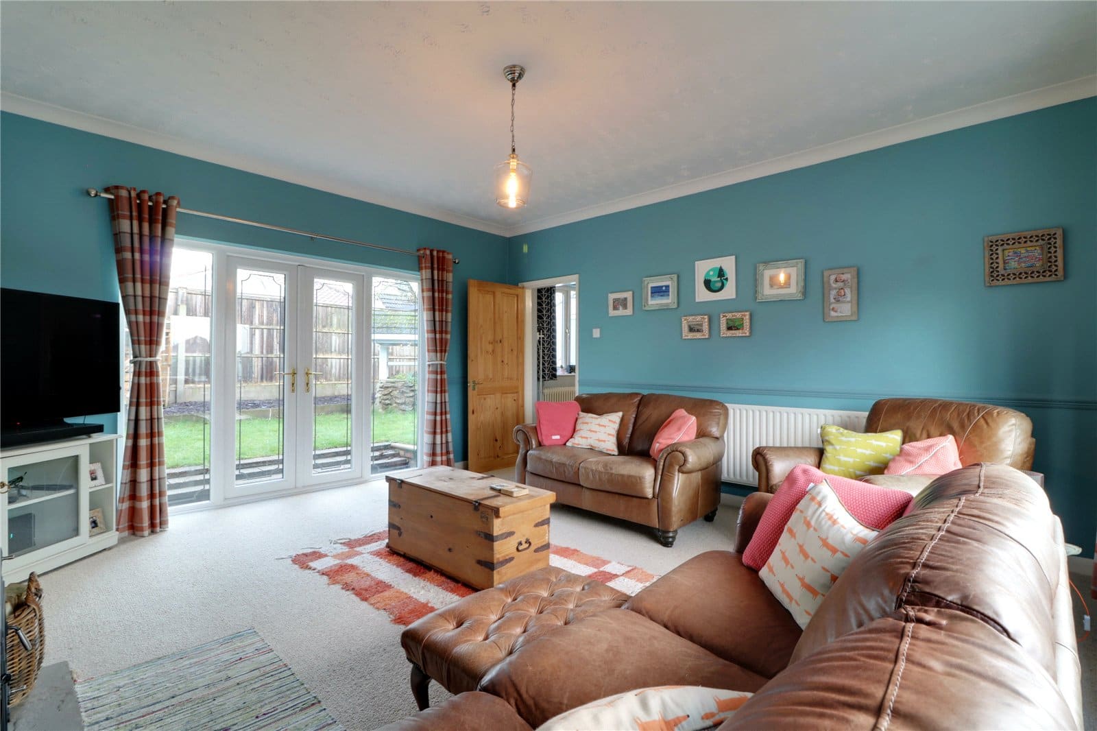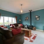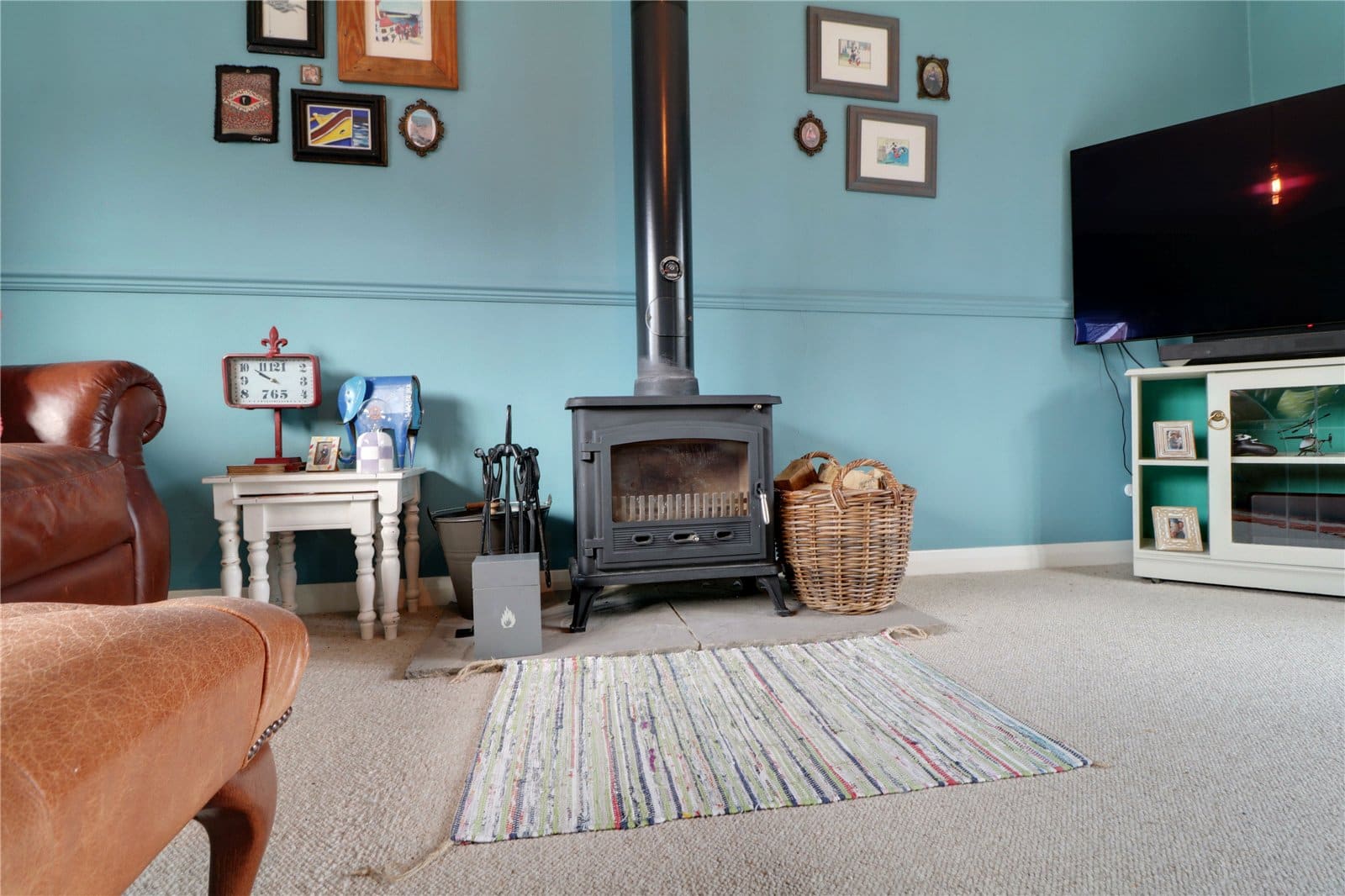 Enjoying a dual aspect with front uPVC double glazed windows and rear twin French doors allowing access to the garden with twin side lights, TV input, dado railing, wall to ceiling coving and a feature log burner.