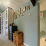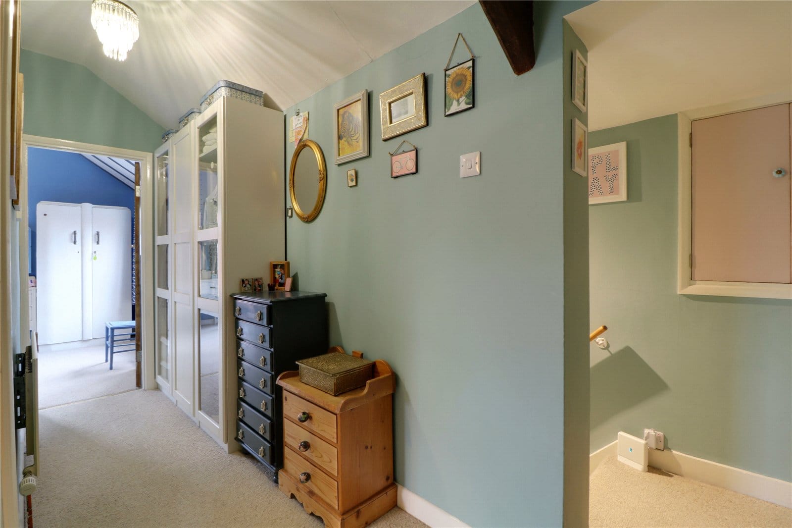 Includes a feature beamed ceiling, twin storage units allowing access to a spacious loft space, inset ceiling spotlights and traditional pine doors leading through to;