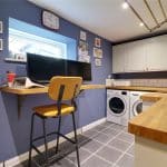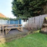 With a rear broad uPVC double glazed window and matching units to the kitchen with light grey shaker style door fronts and rounded pull handles with solid wood working top surfaces incorporating a single Belfast sink bowl unit with drainer to the side and block mixer tap, ceramic tiled splash backs, tiled flooring, ceiling spotlights, plumbing for a washing machine, space for an undercounter tumble dryer and a wall mounted Alpha modern gas combi boiler.