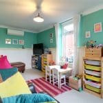 Enjoying a dual aspect with front and side uPVC double glazed windows and beams to the ceiling.