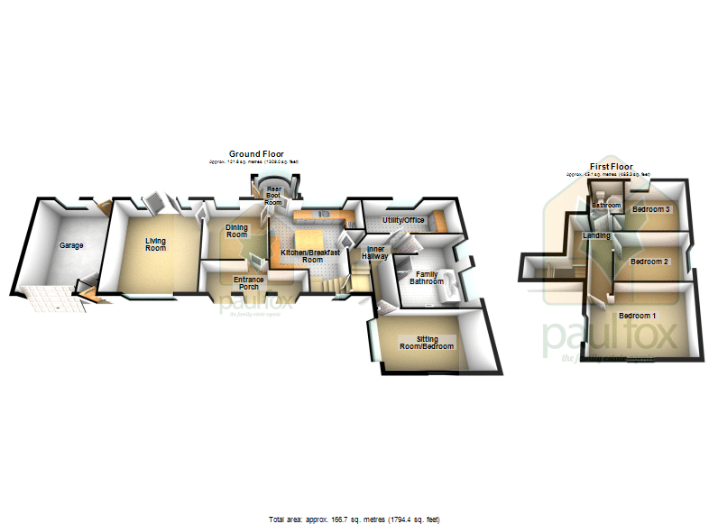 With a rear uPVC double glazed window and a door leads through to a rear boot room/entrance lobby. The kitchen includes a range of Olive light green shake style low level units, drawer units and wall units with glazed fronts with brushed aluminium style pull handles with a butcher block style working top surface that incorporates a one and a half porcelain sink bowl unit with drainer to the side and attractive ceramic tiled splash backs, space for a free standing Belling five ring gas hob with oven beneath and overhead matching extractor fan with downlighting and ceramic tiled splash backs, decorative beams to the ceiling, tiled flooring, space for an American style fridge freezer, plumbing for a washing machine, vertical wall mounted double modern panelled radiator, a dog legged staircase leads to the first floor accommodation with attractive arched glazed door and a front uPVC double glazed window.
