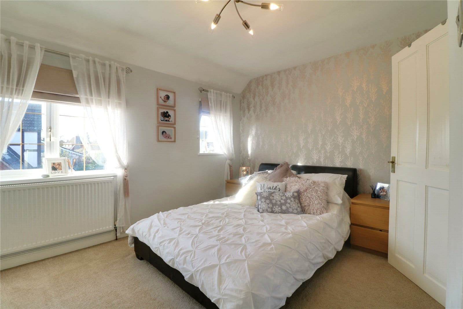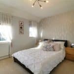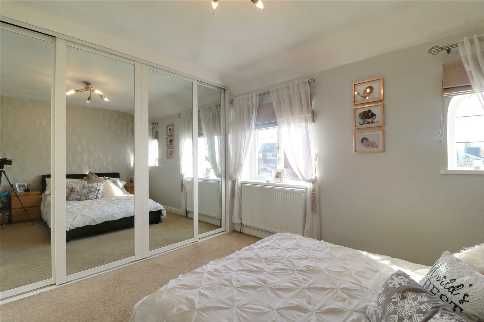 Two front uPVC double glazed windows, a bank of fitted wardrobes with mirrored doors and an internal door allows access through to;