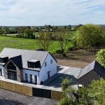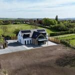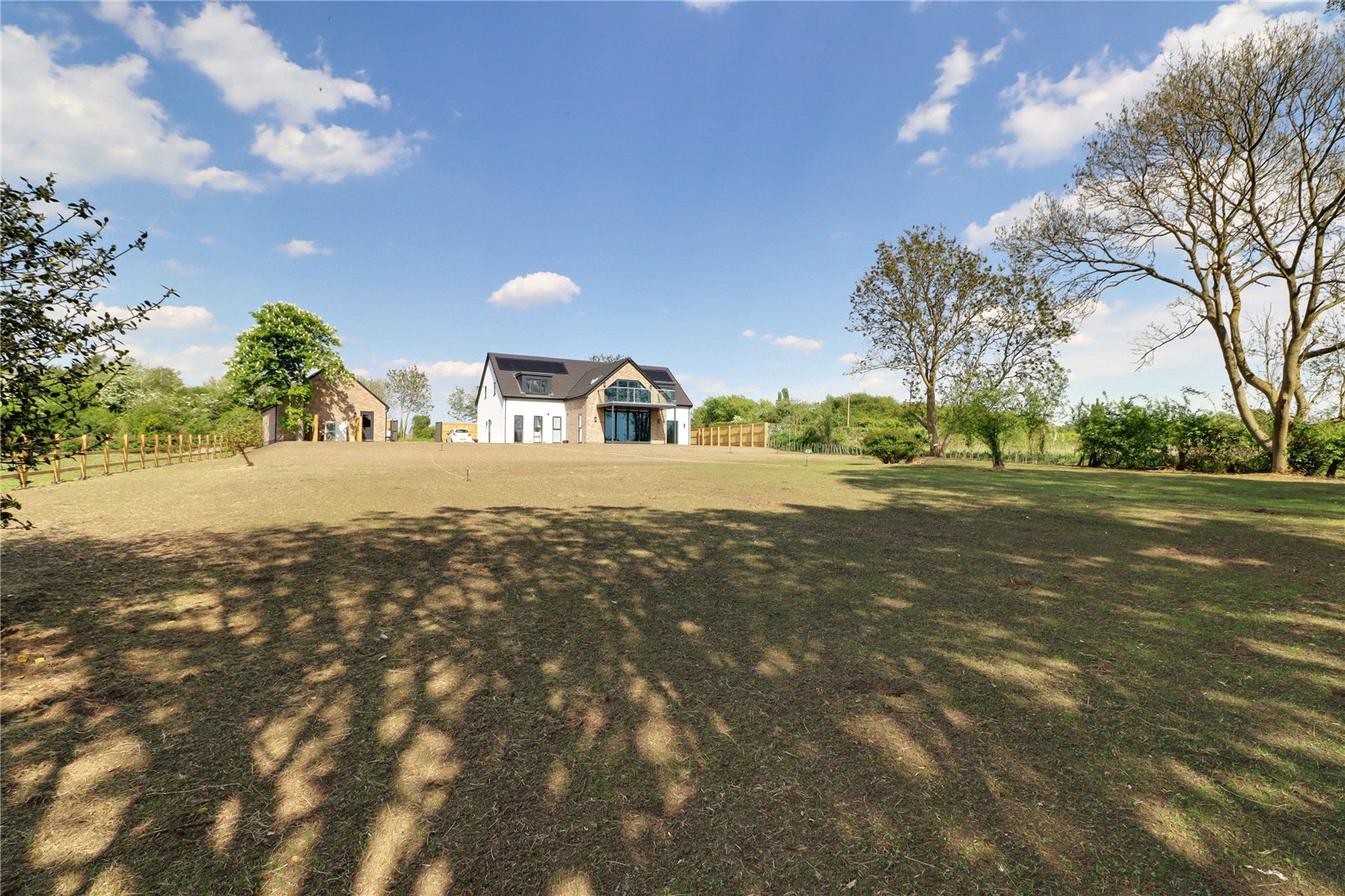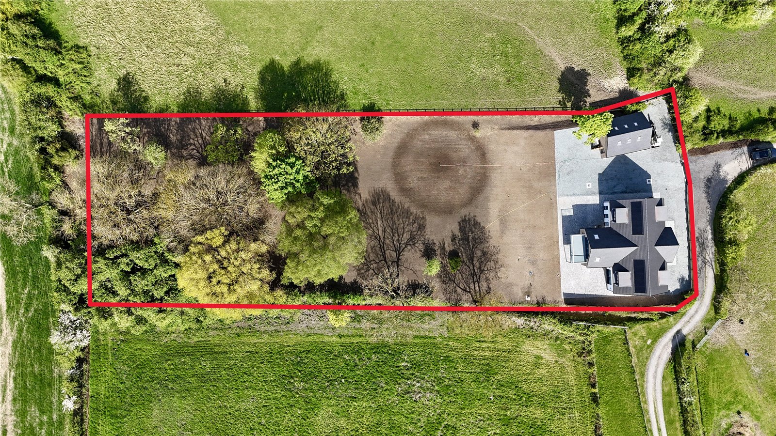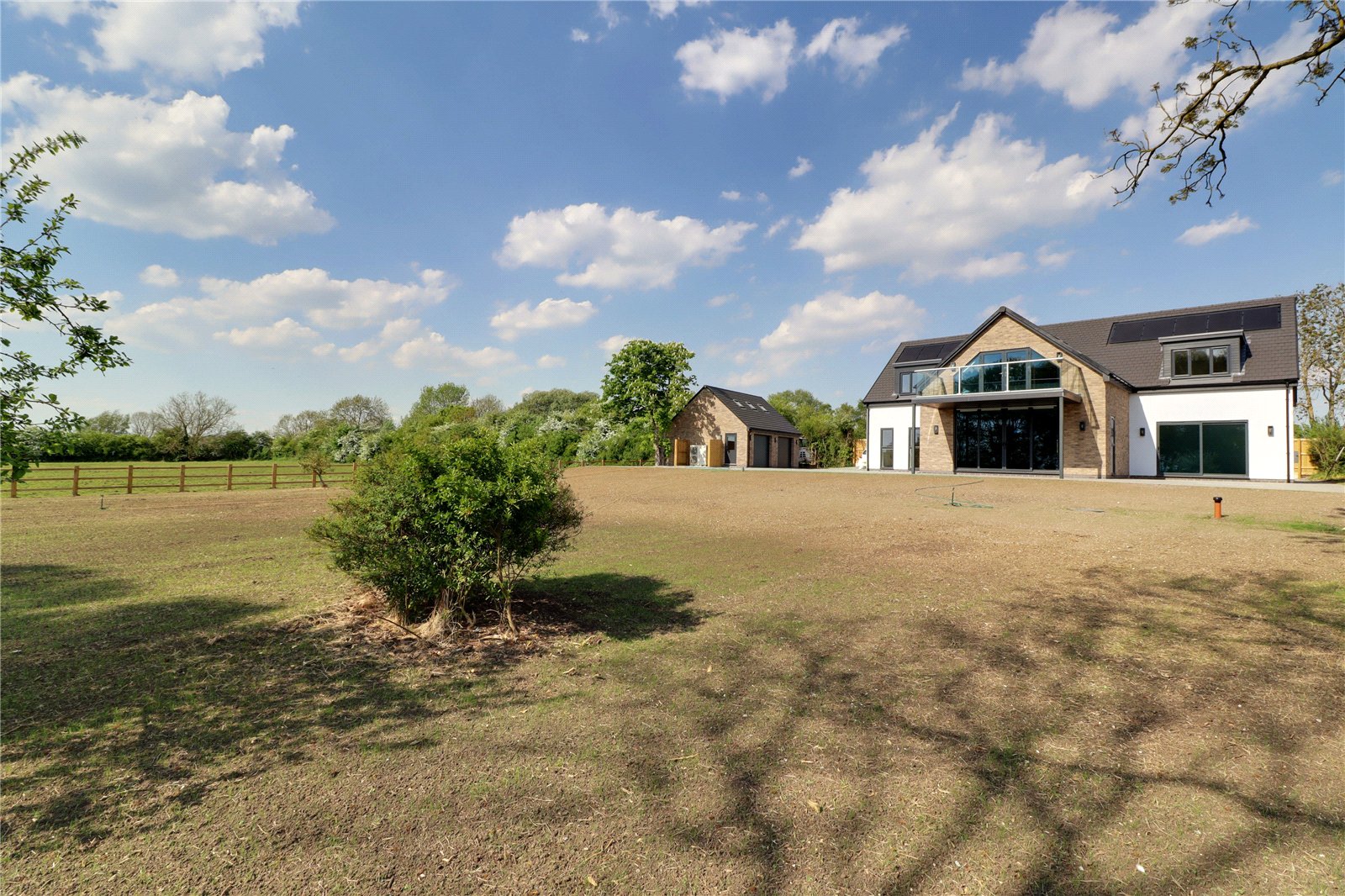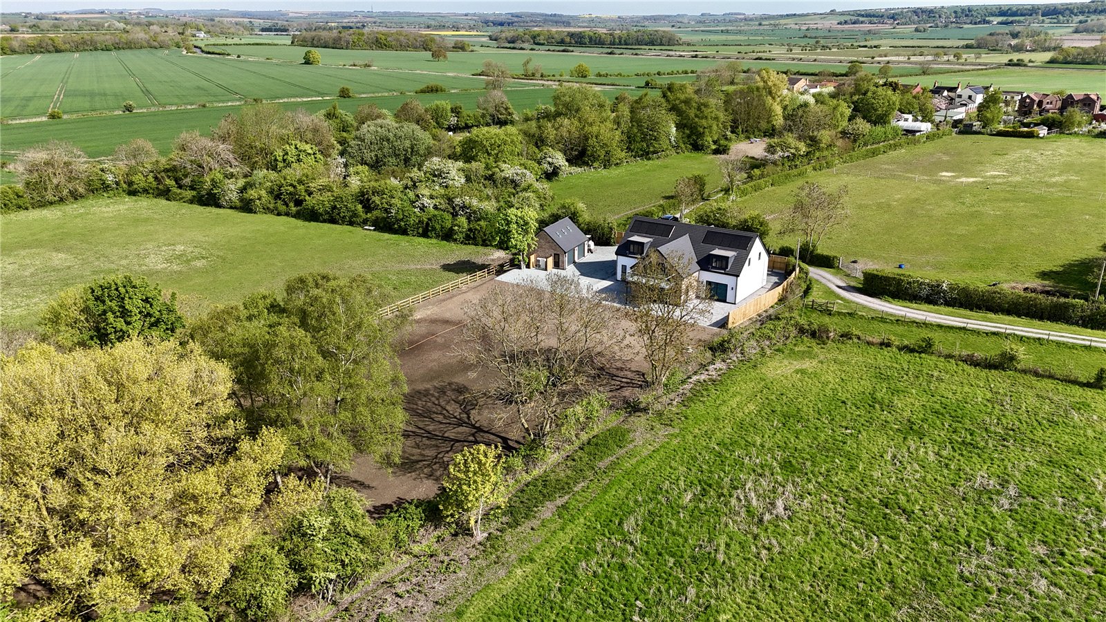 The property is positioned extremely discreetly down a private road with front fenced boundary providing screening and security with electric remote double opening gates with intercom onto a substantial front and side gravelled driveway providing parking for an excellent number of vehicles with storage for a caravan or motorhome if required, electric car charging point, outside water tap, perimeter pathways provides access to the front entrance door and continues to the rear providing seating areas. The garden is newly seeded and will be grass laid with open yet defined boundaries making the most of the adjoining countryside. With the garden also incorporating mature woodland area.