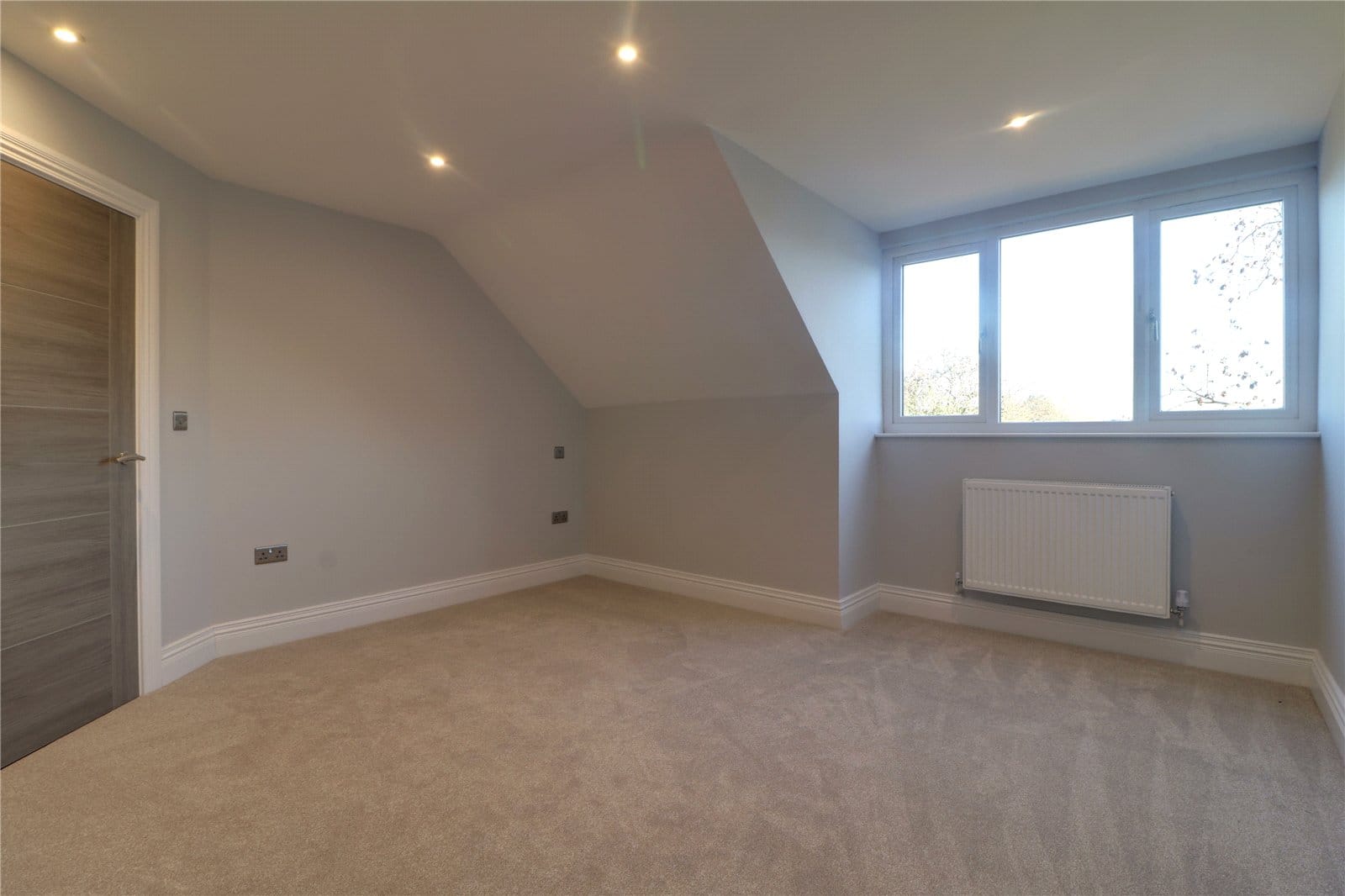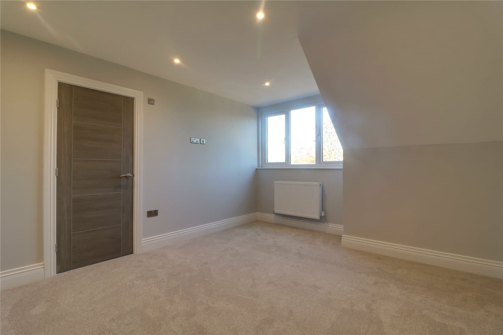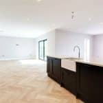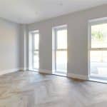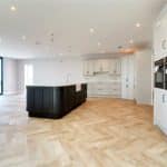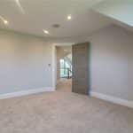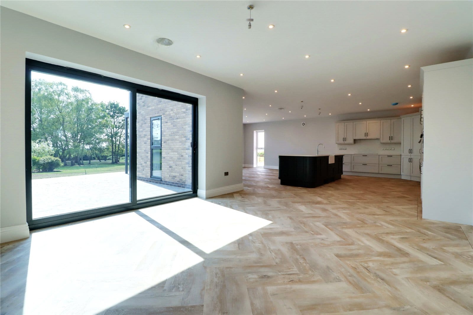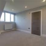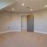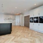 Three front facing uPVC double glazed windows, continuation of herringbone flooring with underfloor heating, inset ceiling spotlights and speakers and TV and telephone sockets.