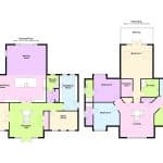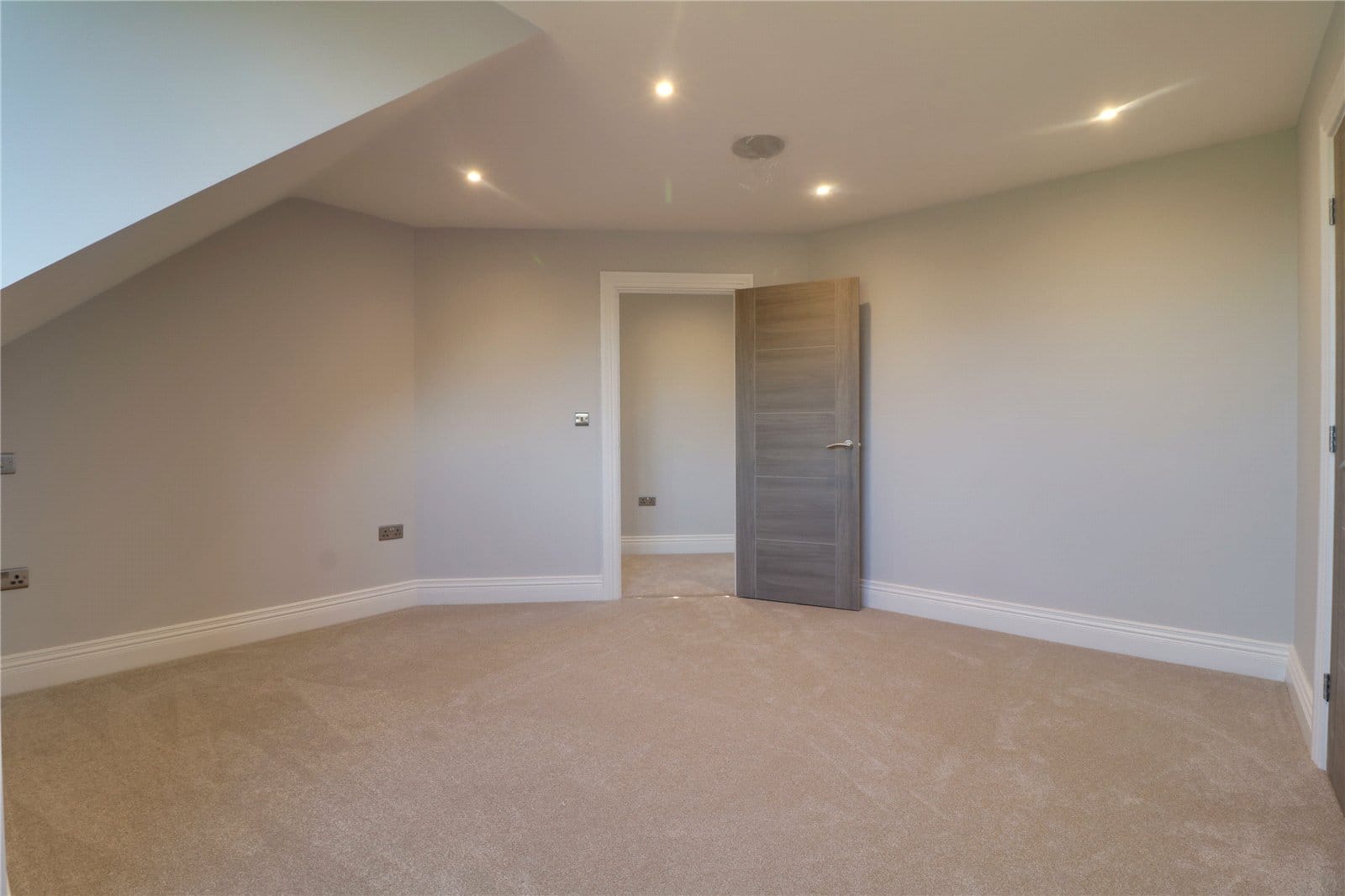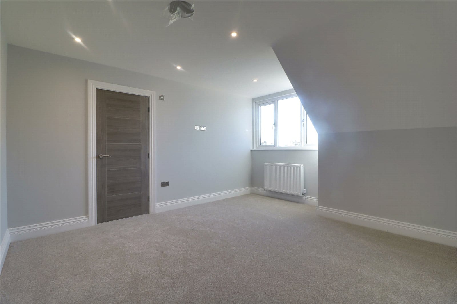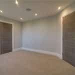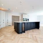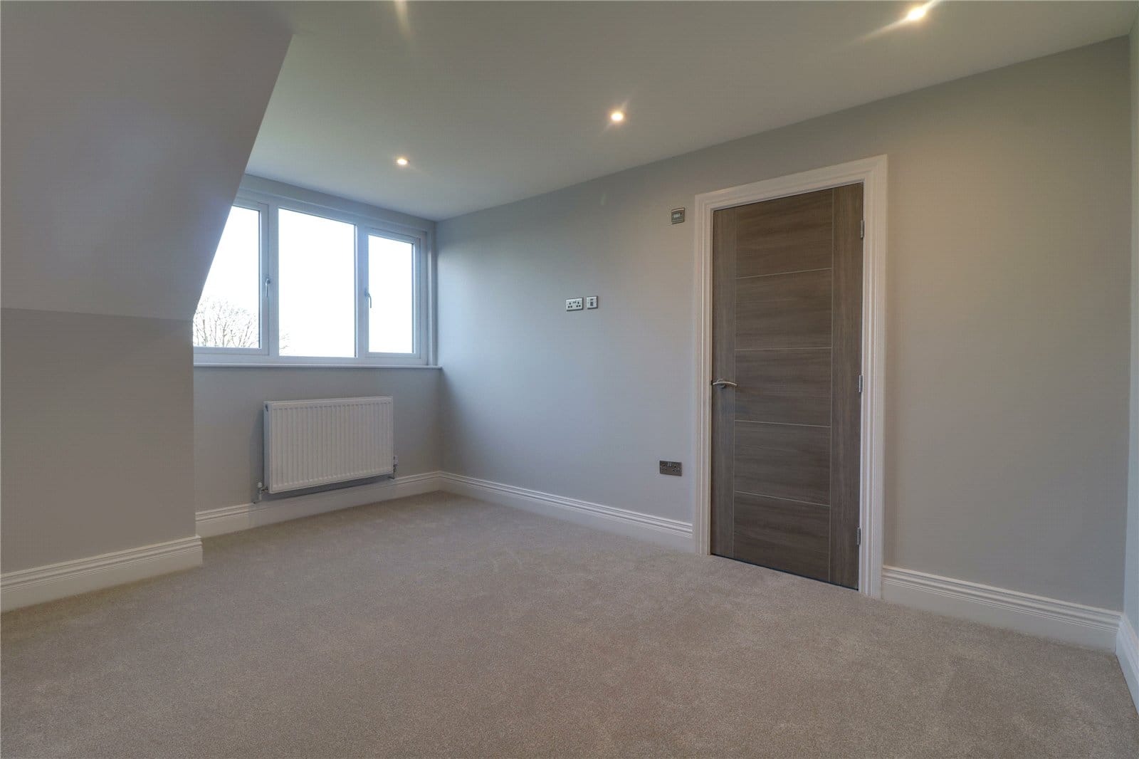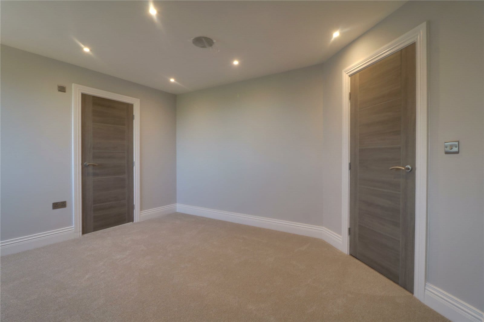 Three front facing uPVC double glazed windows, continuation of herringbone flooring with underfloor heating, inset ceiling spotlights and speakers and TV and telephone sockets.