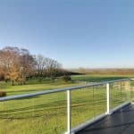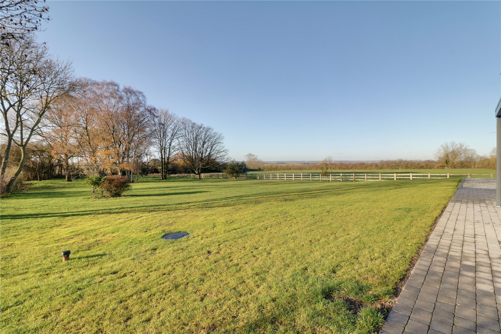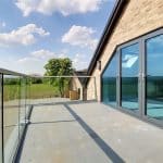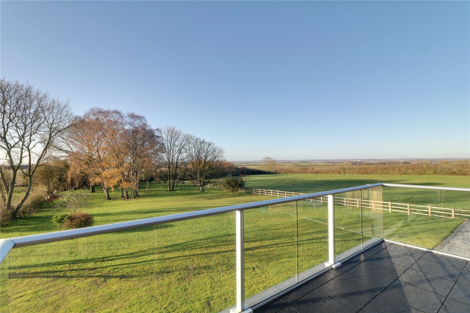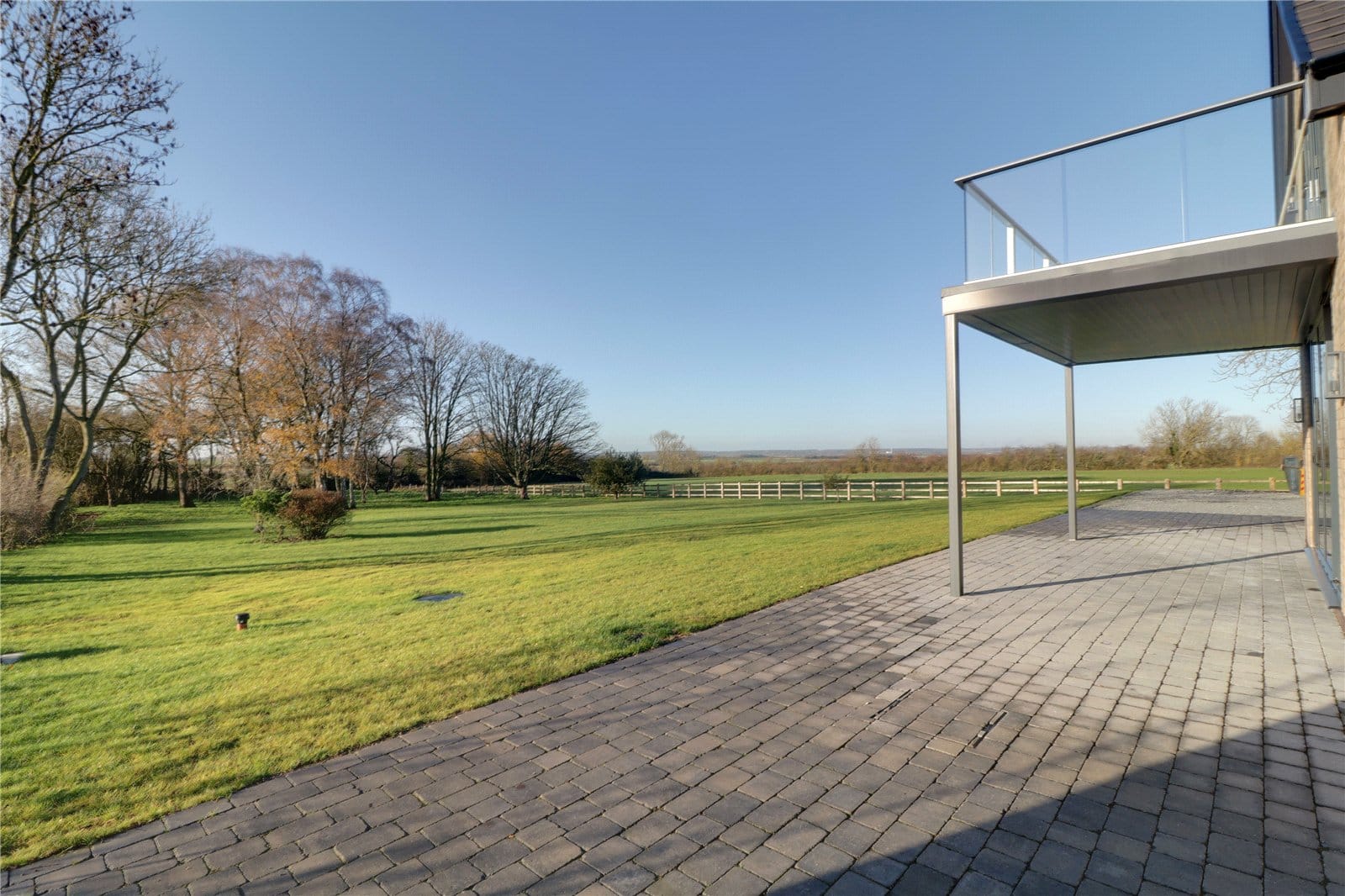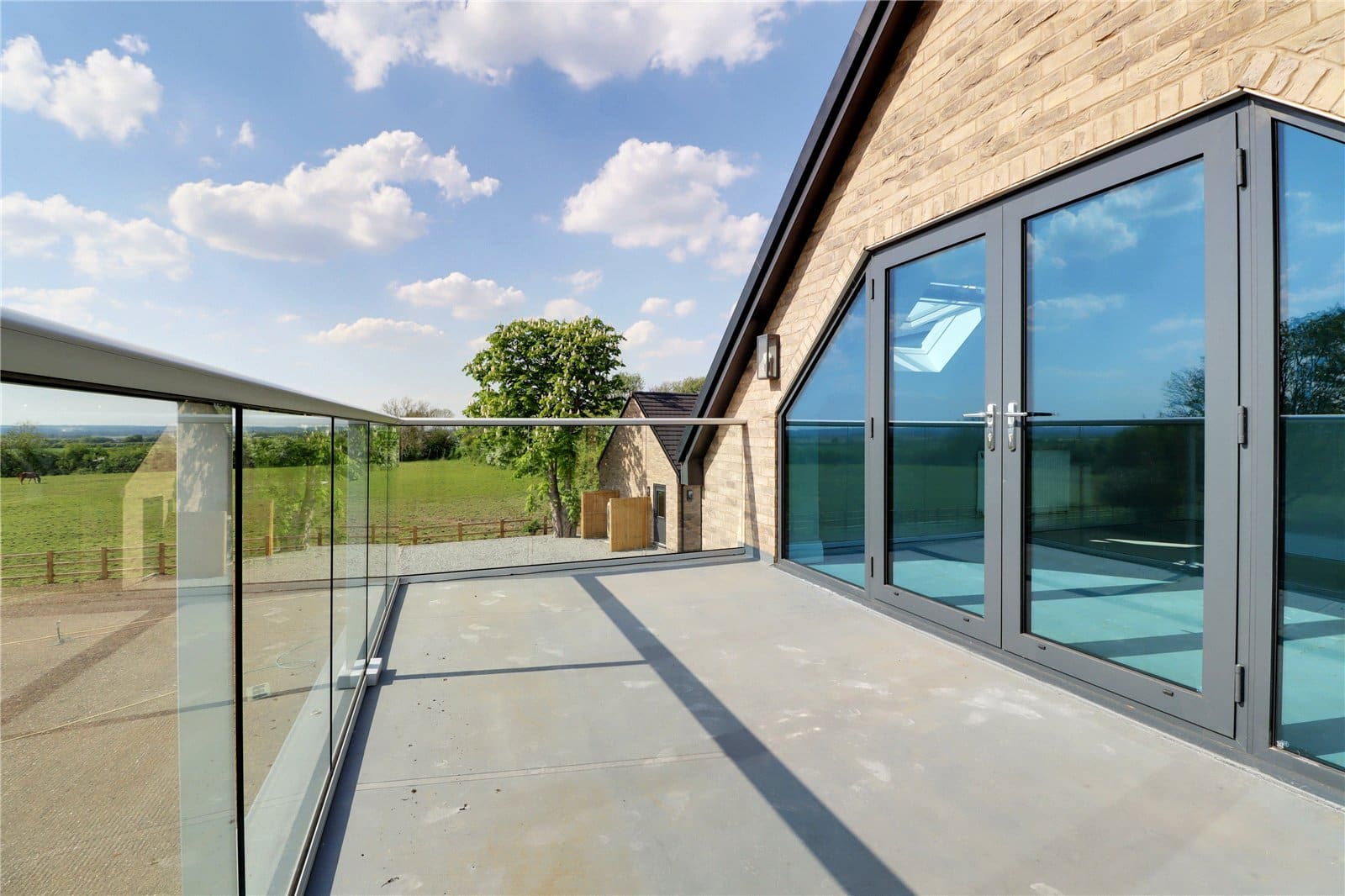 With glazed balustrading and enjoys excellent views across the garden and countryside.