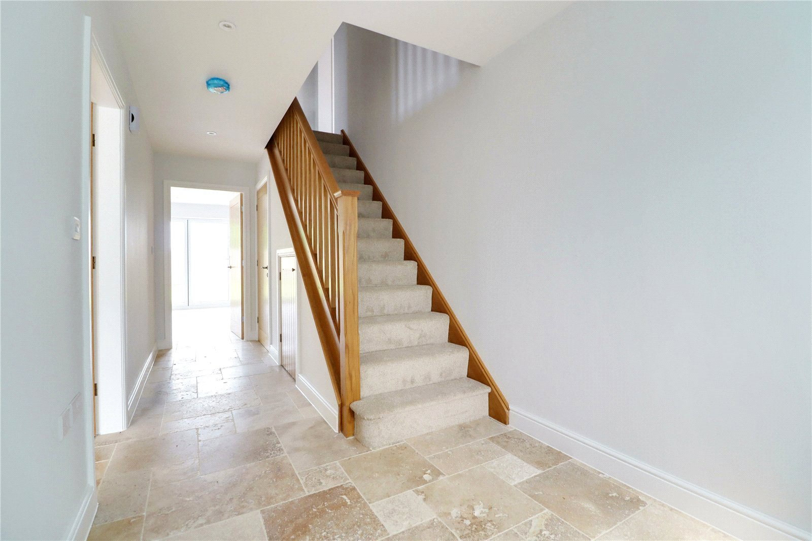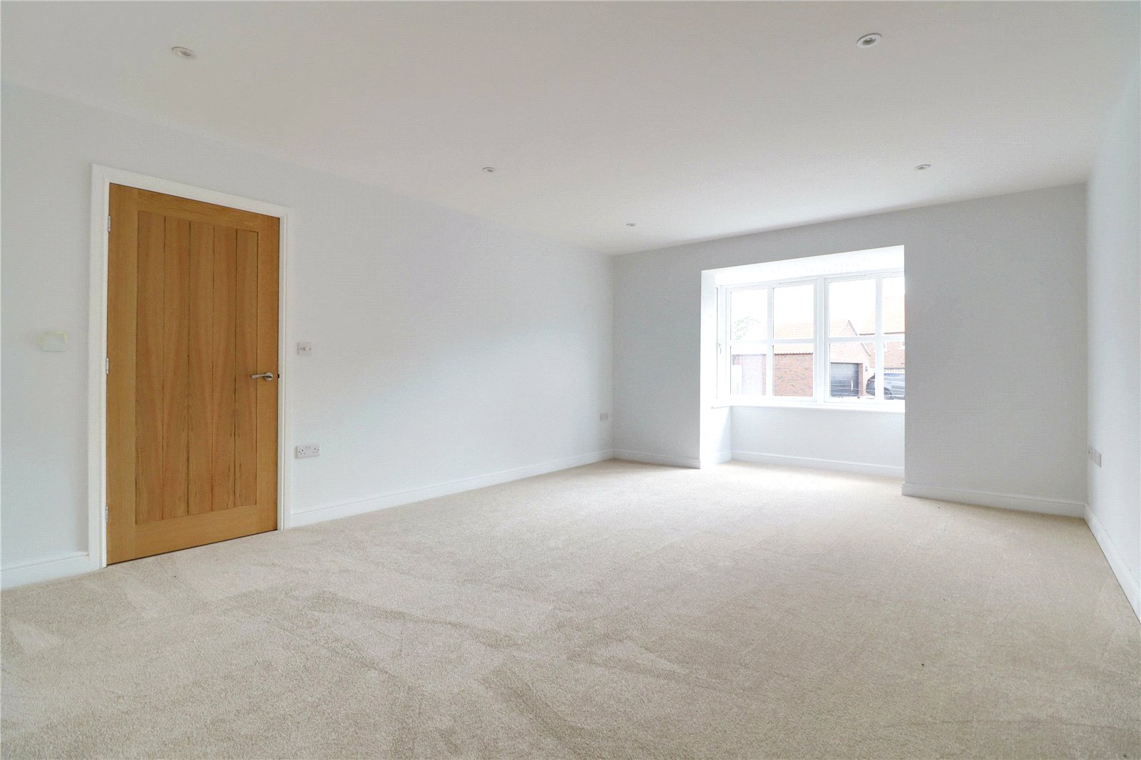 OPEN REAR ASPECT ** An outstanding brand new detached executive detached family home located within a highly desirable semi-rural location enjoying excellent views and set within a select development of 5 further homes. The well-appointed accommodation approaches 2200 sq ft (including the garage) and comes well-arranged over 2 floors enjoying a quality finish throughout that includes, internal oak doors, German bespoke kitchen with quartz tops and integral appliances, travertine flooring and Porcelanosa bathroom fittings. A central reception hallway provides a welcoming entrance with a cloakroom and access to a formal front living room, a large open plan living/dining kitchen is an excellent area to entertain with bi-folding doors leading into the garden, from the kitchen is a spacious matching utility room with personnel door into the garage. The first floor enjoys a central landing with a built-in storage cupboard, luxury master bedroom suite with a dressing area and en-suite shower room, 3 further spacious bedrooms with a second en-suite shower room and main family bathroom. The front provides a generous block paved driveway allowing extensive parking with direct access to the double garage with gated access to the rear. The private enclosed rear garden enjoys an open aspect and comes principally lawned with a seating area that can be accessed from the kitchen. Finished with full double glazing and air source heating providing excellent efficiency. Viewing comes with the agents highest of recommendations.