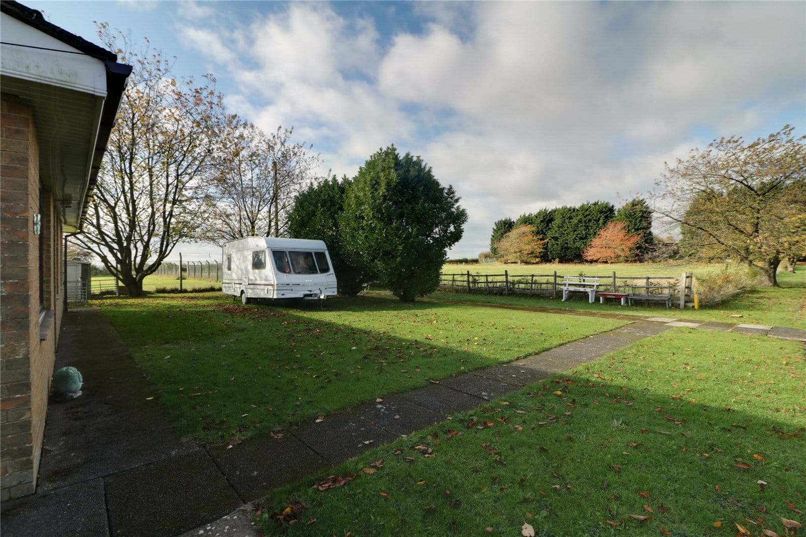 The bungalow occupies spacious surrounding lawned gardens with excellent opportunity for alterations if required. The front provides ample parking for multiple vehicles including a motorhome/caravan.