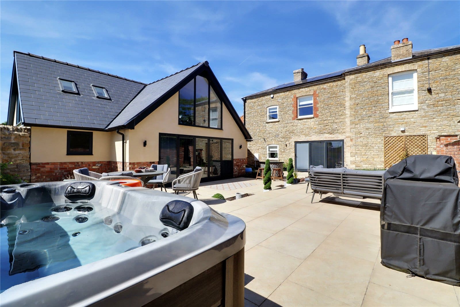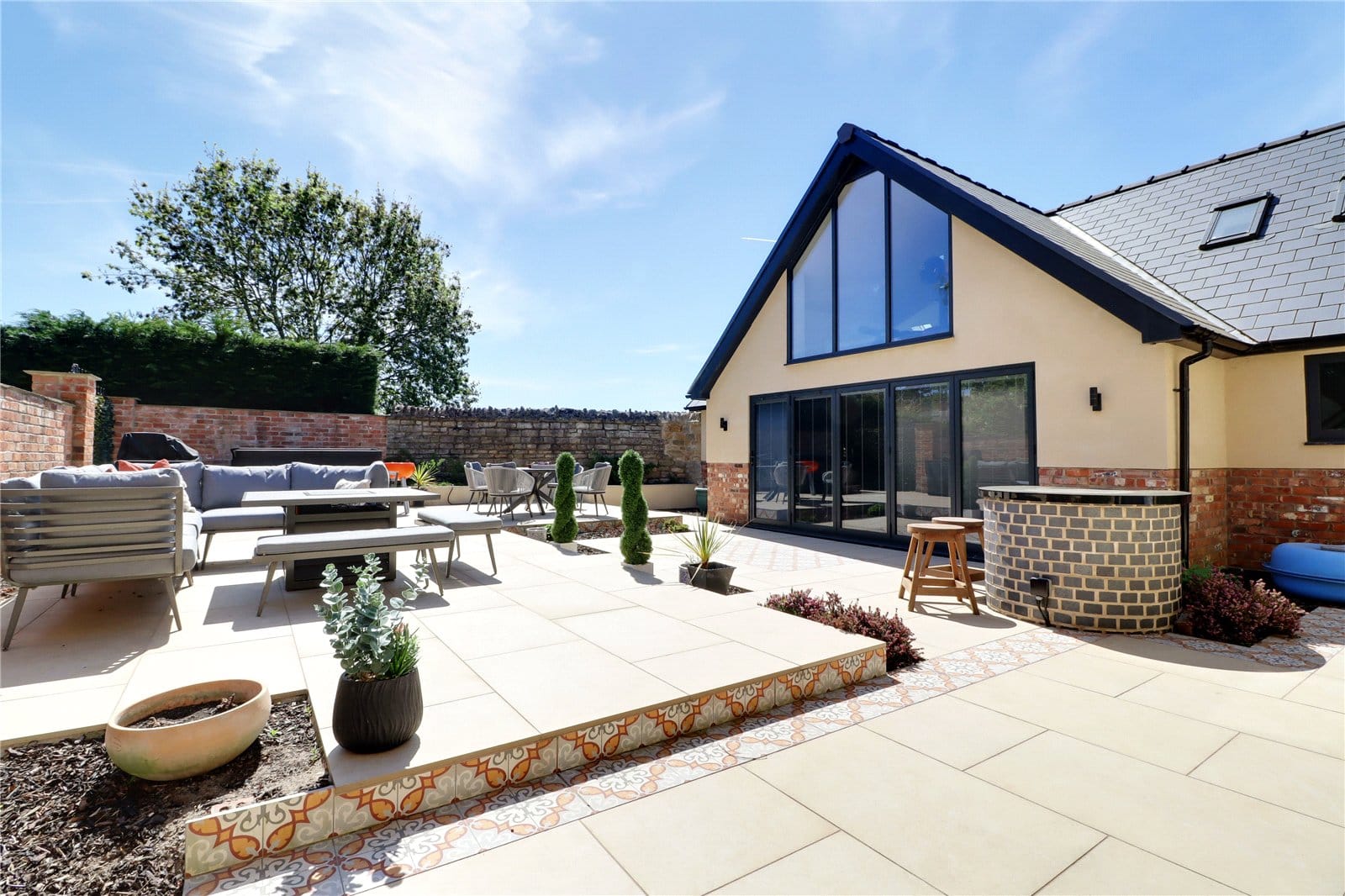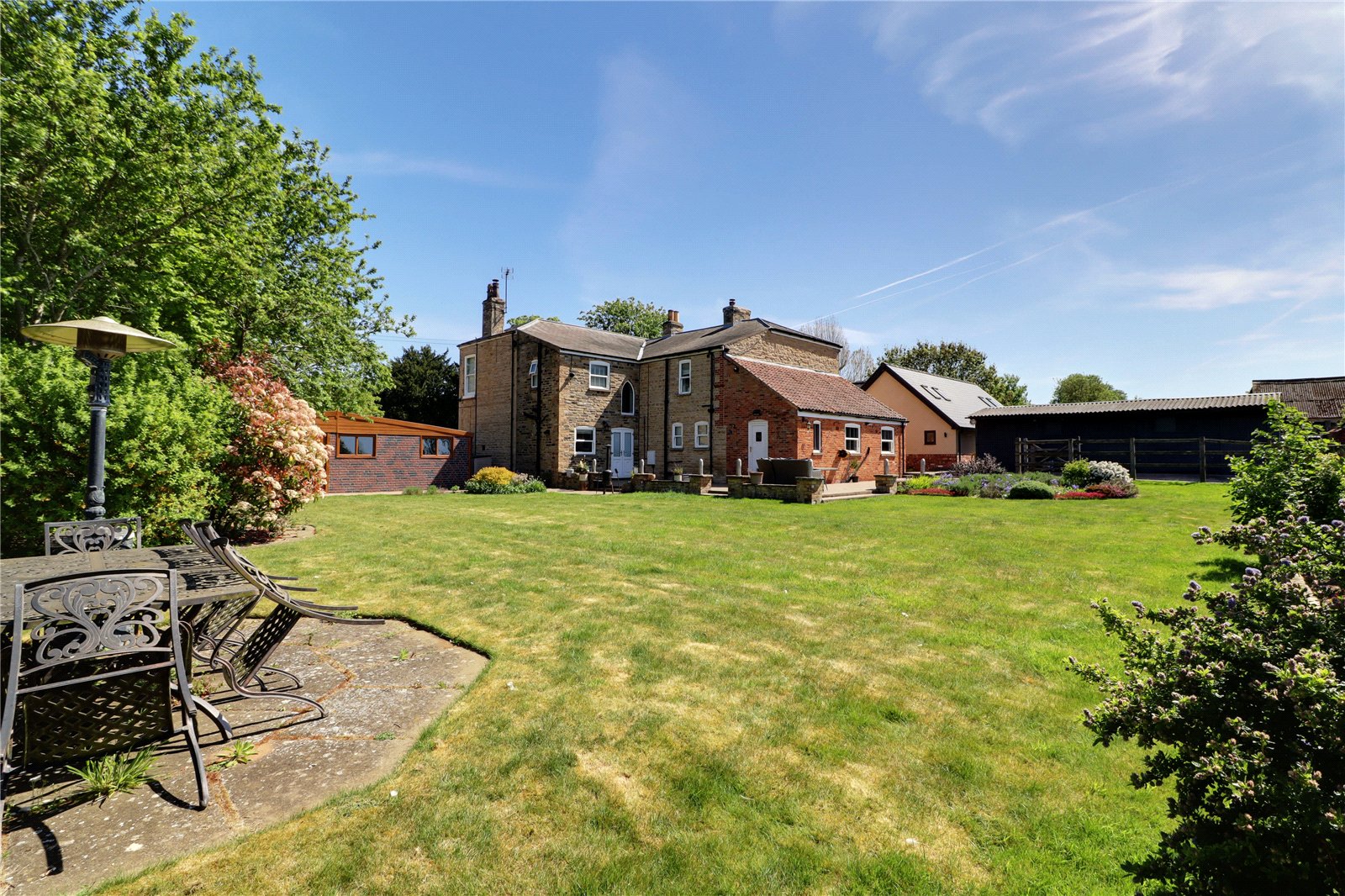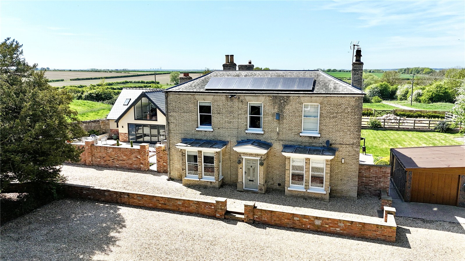 The property benefits from a triple garage block to the northern side.