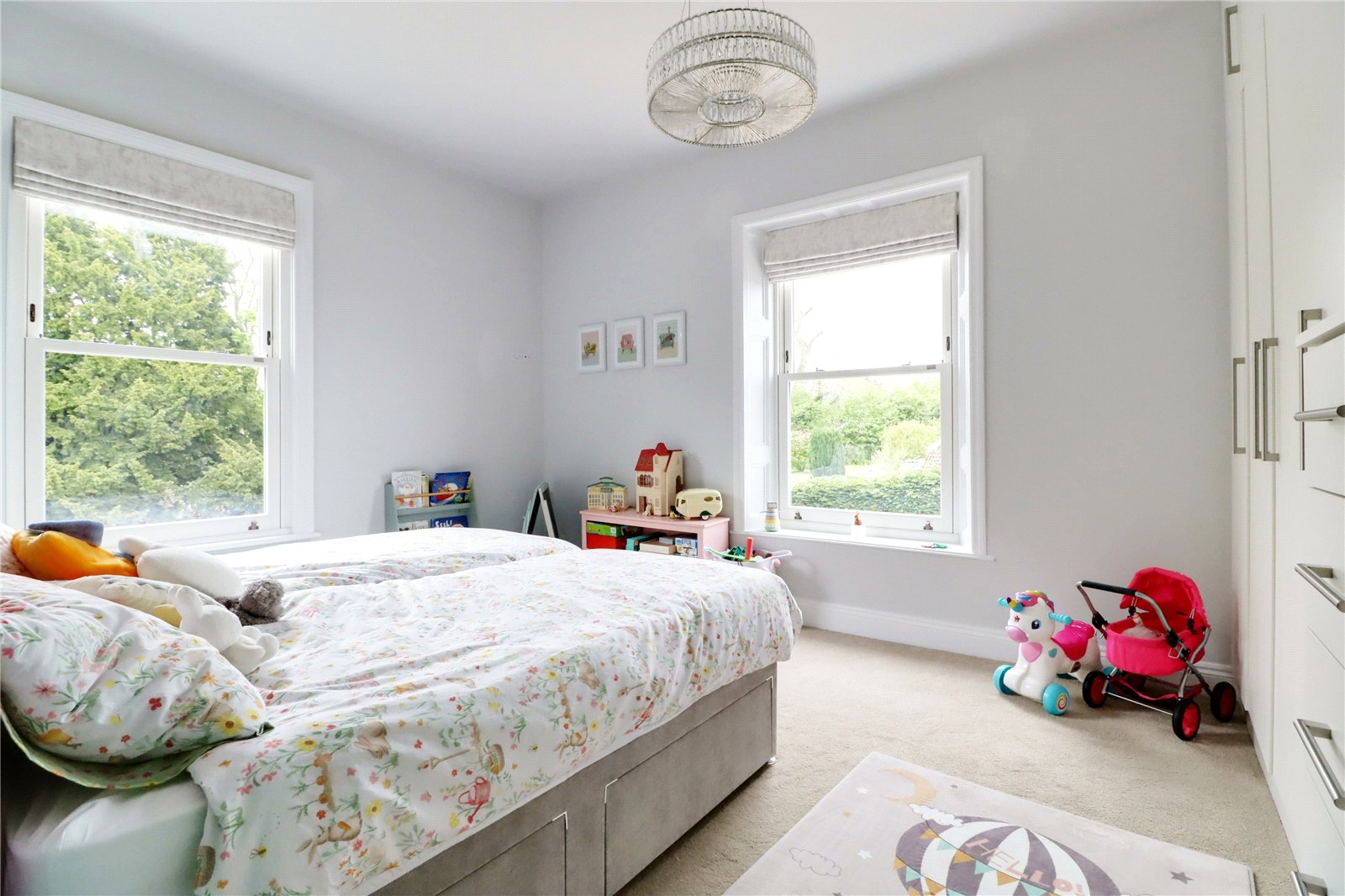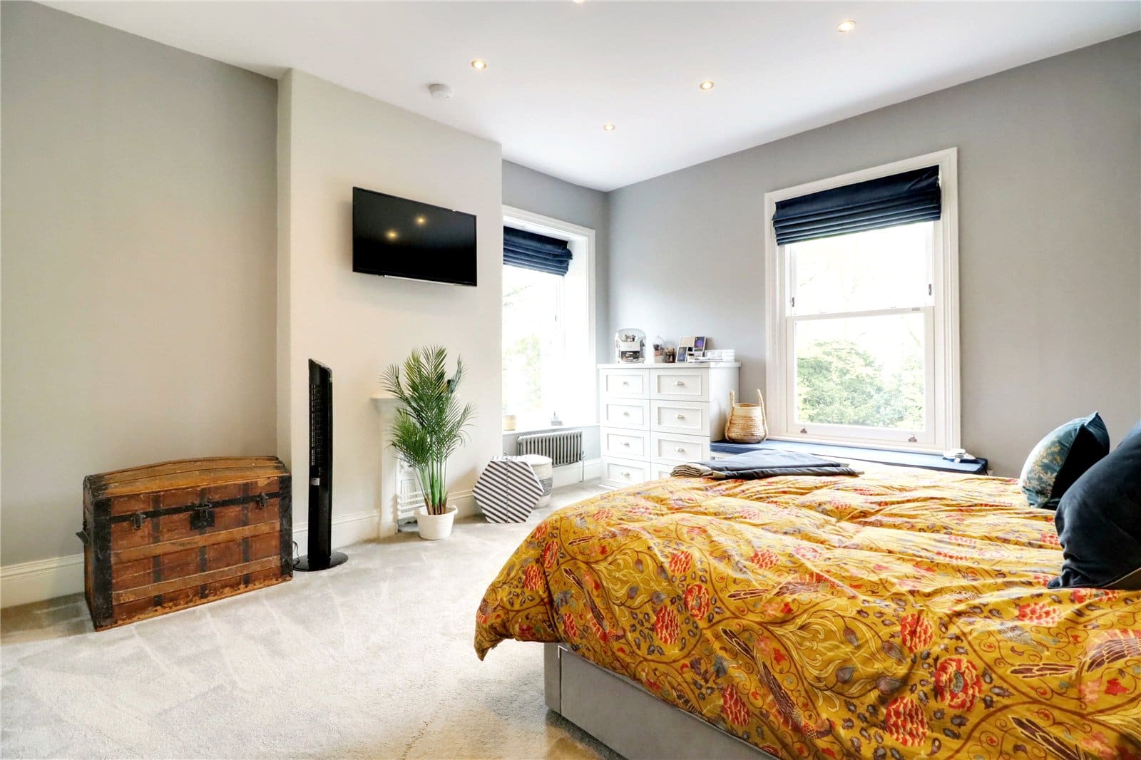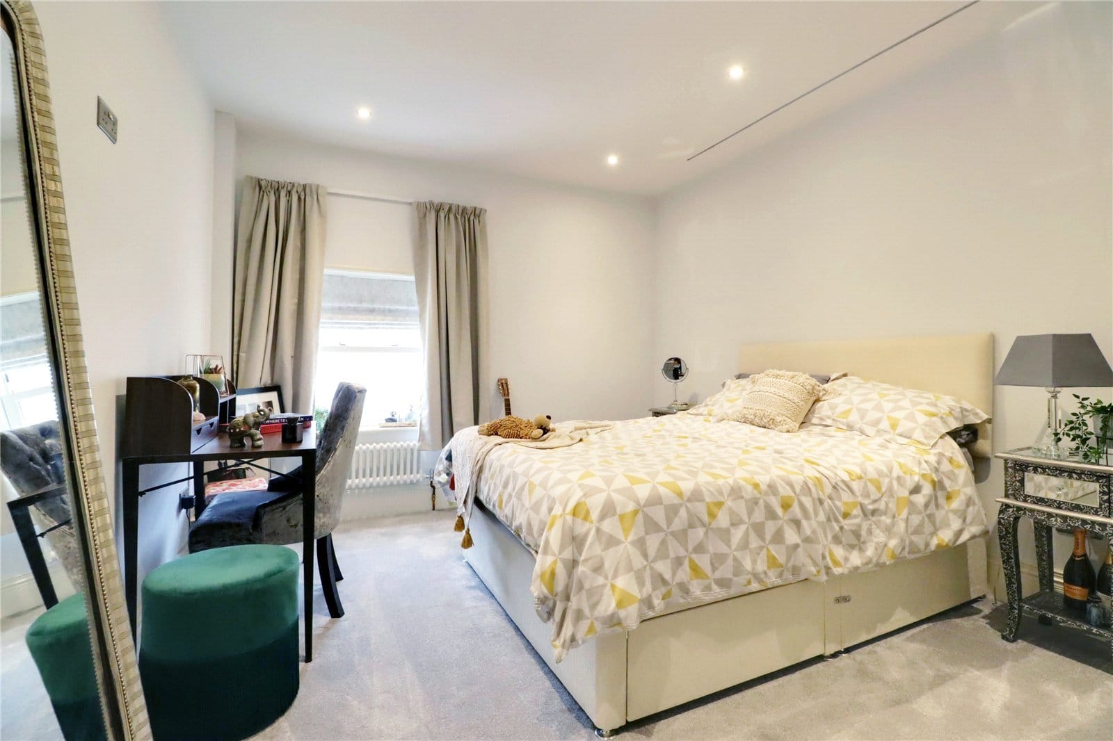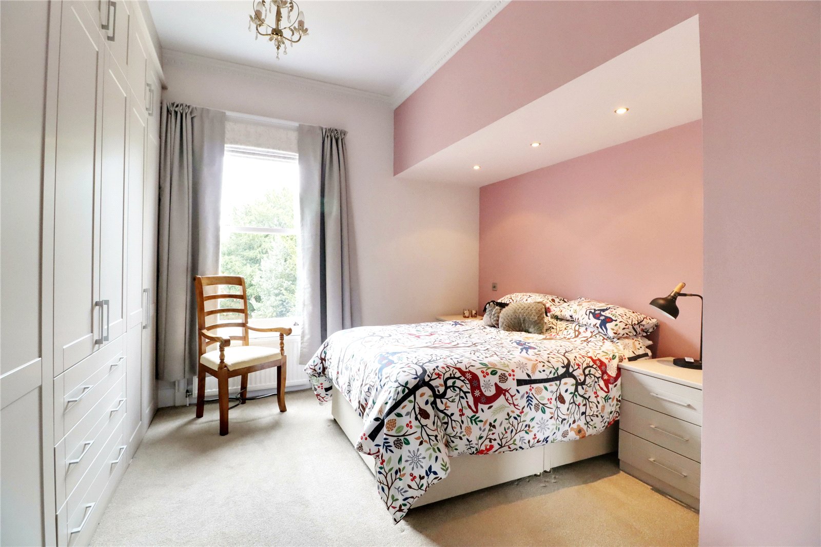 Enjoying a dual aspect with front and side vertical sliding uPVC double glazed sash windows, bespoke fitted wardrobes and drawers and high level storage.