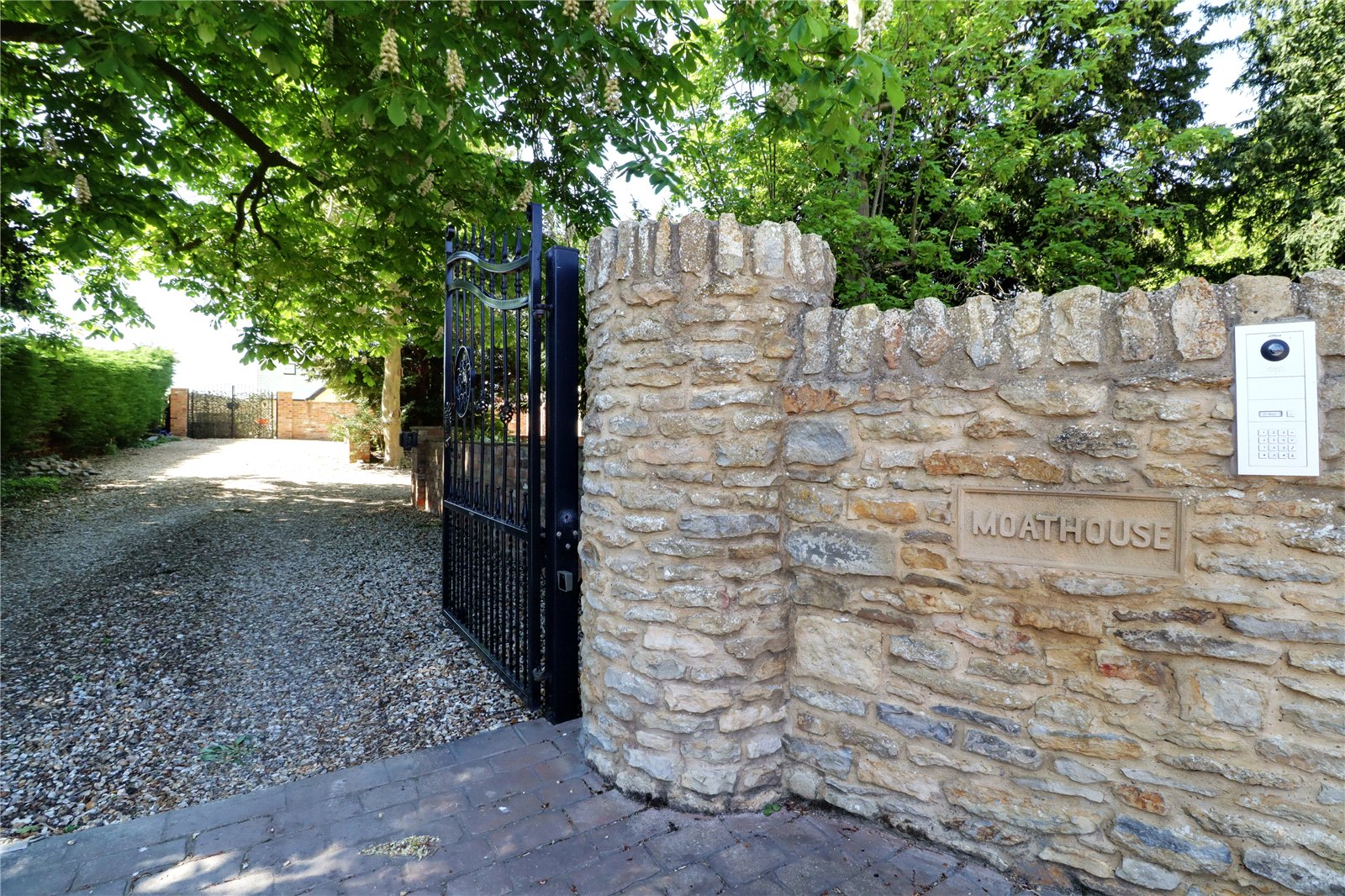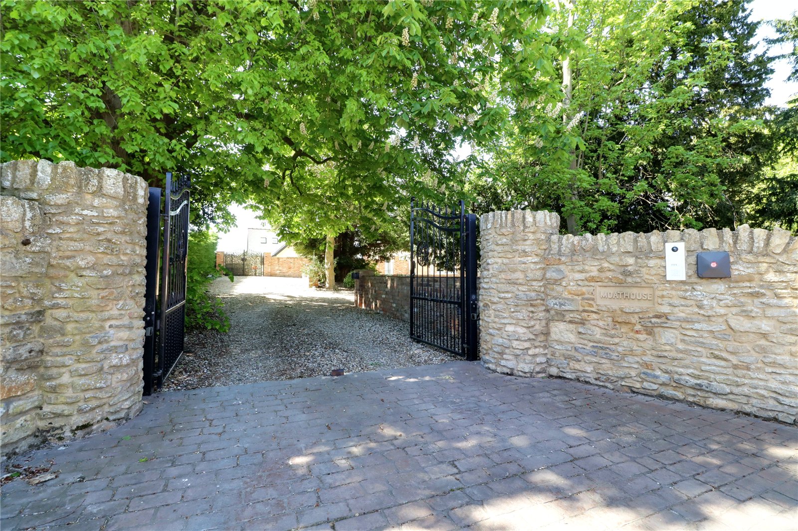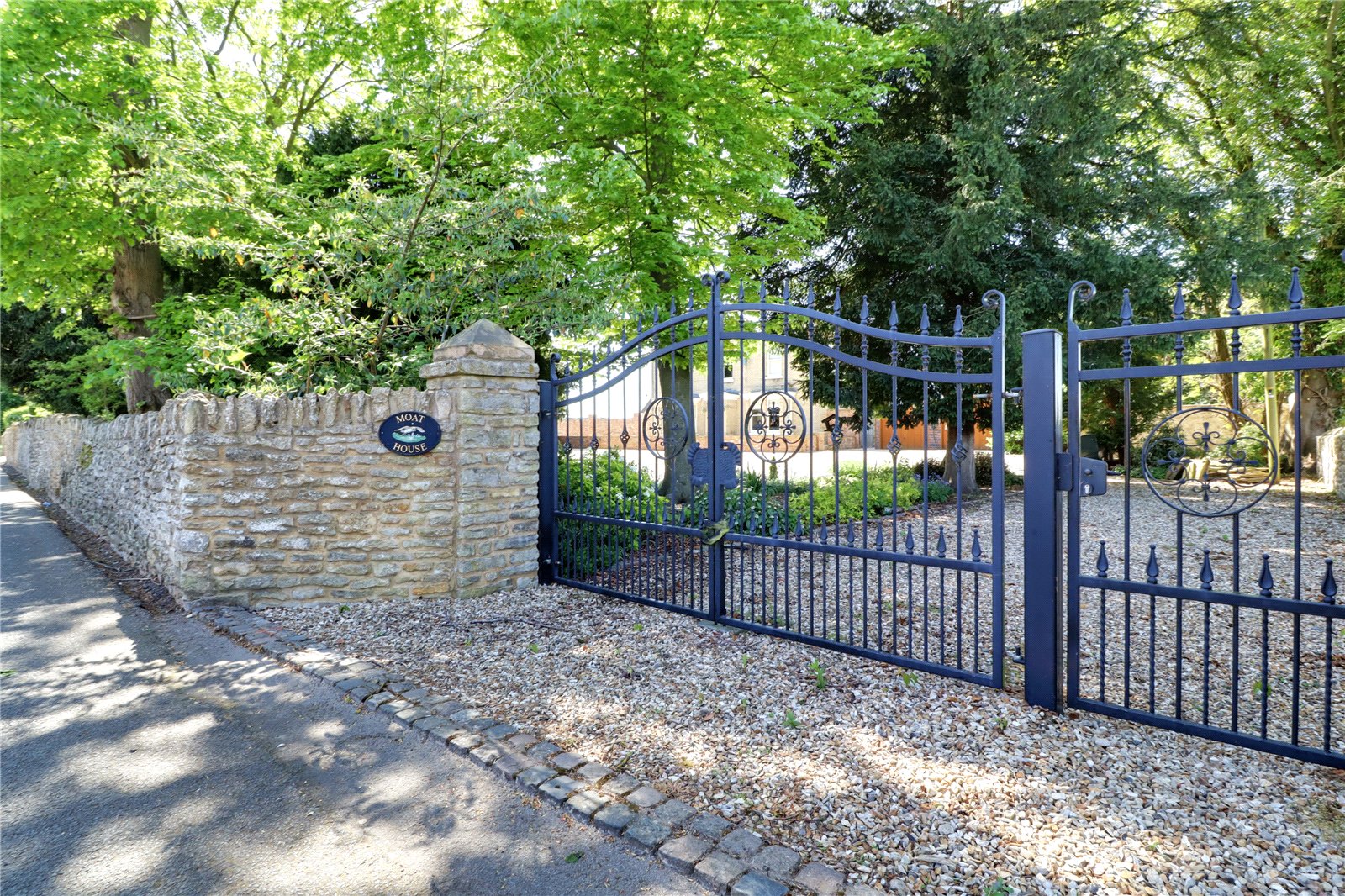 The property sits within extremely private grounds that amount to 0.8 of an acre with a charming front stone boundary wall with twin electrically operated entry gates that lead to a substantial pebbled driveway allowing parking for a large number of vehicles and with access to a triple garage. Gated access to either side of the property leads to a south/westerly facing rear garden being principally lawned with mature borders and a patterned seating area. Linking the house and games room is a landscaped courtyard style garden of a Mediterranean design being tile laid providing an excellent area to entertain with the added feature of an original well. Within the rear garden is a fenced sand arena with adjoining stable block and feed room that would lend itself for a small horse or pony.