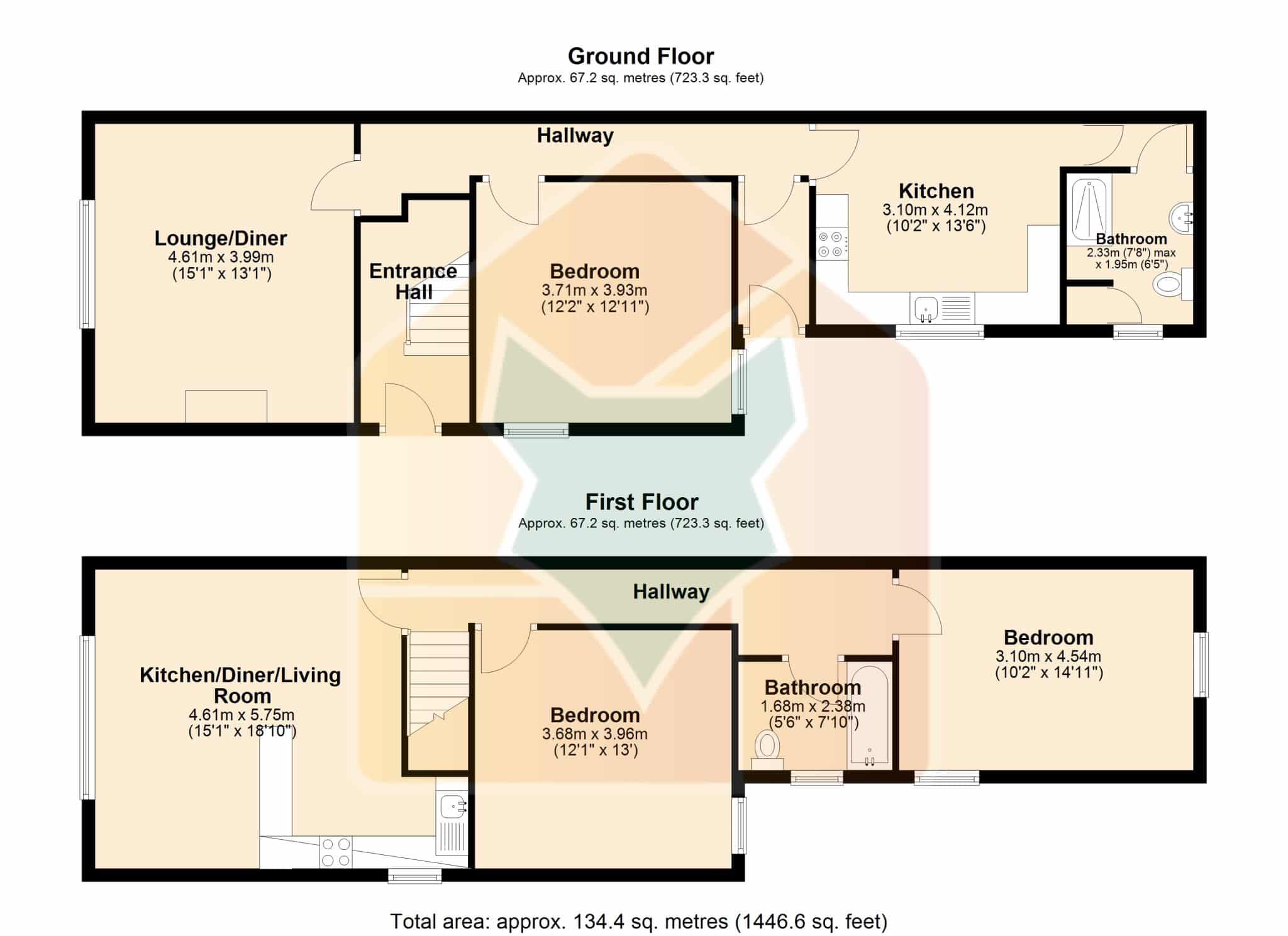 The first floor apartment is equally impressive, featuring a bright and airy open-plan kitchen, dining and living space — ideal for modern living and entertaining — along with two well-sized double bedrooms and a bathroom.