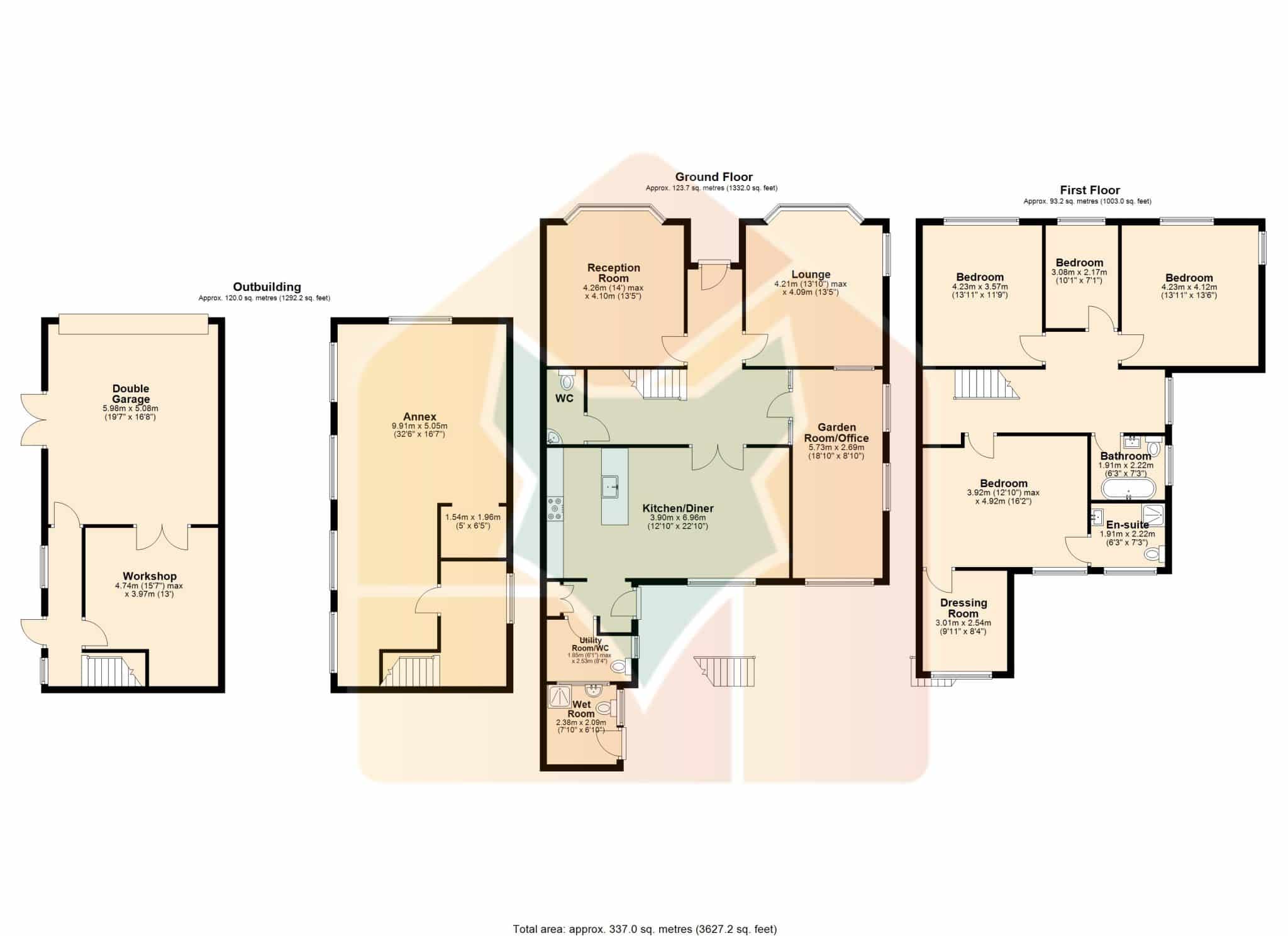 This substantial detached Victorian residence offers exceptional versatility and generous living space throughout—ideal for growing families, multi-generational living, or those seeking home business potential. Beautifully proportioned, the home features four spacious bedrooms, including a master suite with en-suite and dressing room, plus a detached annex incorporating a double garage, workshop, and a large first-floor office space.