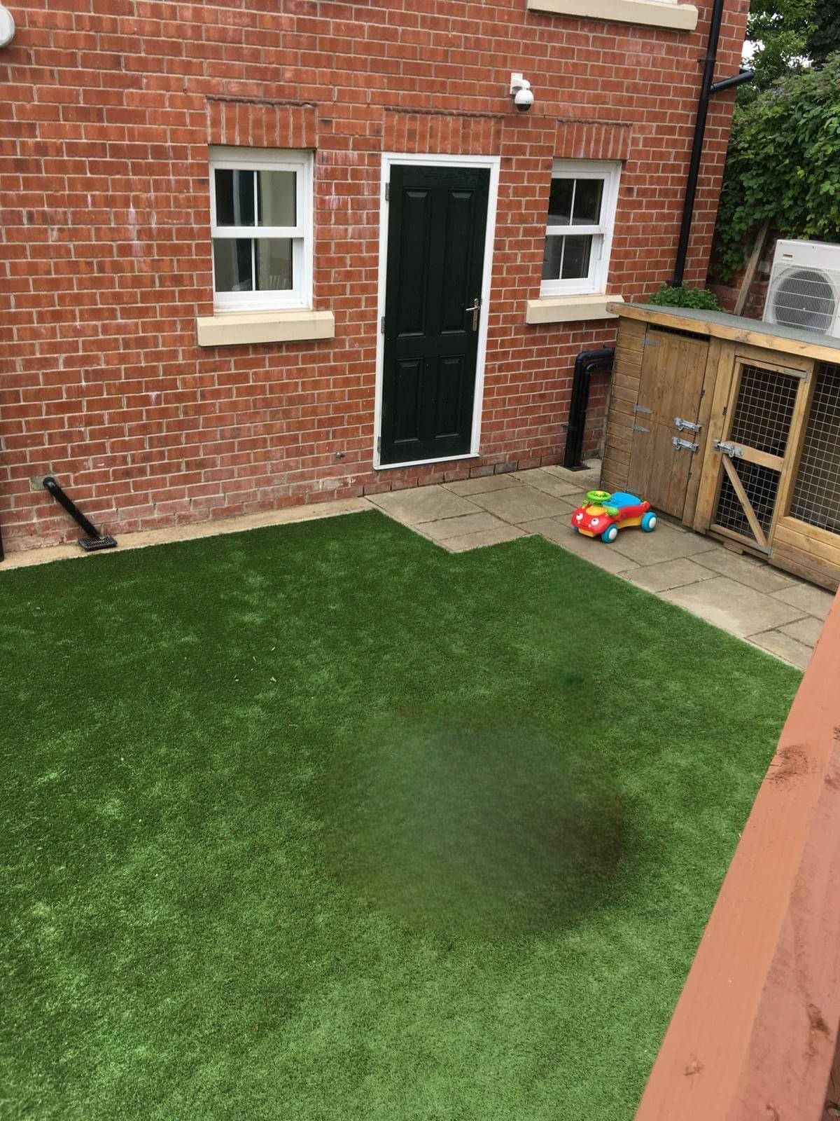 The rear garden is fully enclosed and designed for low maintenance, featuring a raised paved entertaining area and artificial lawn, Wet Room with Shower and Toilet —ideal for outdoor relaxation.