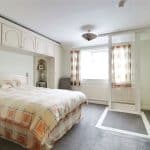 Front uPVC double glazed and leaded window and fitted bedroom furniture.