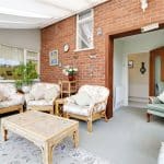 With dwarf walling, surrounding uPVC double glazed windows with rear French doors allowing access to the garden and sloped ceiling.
