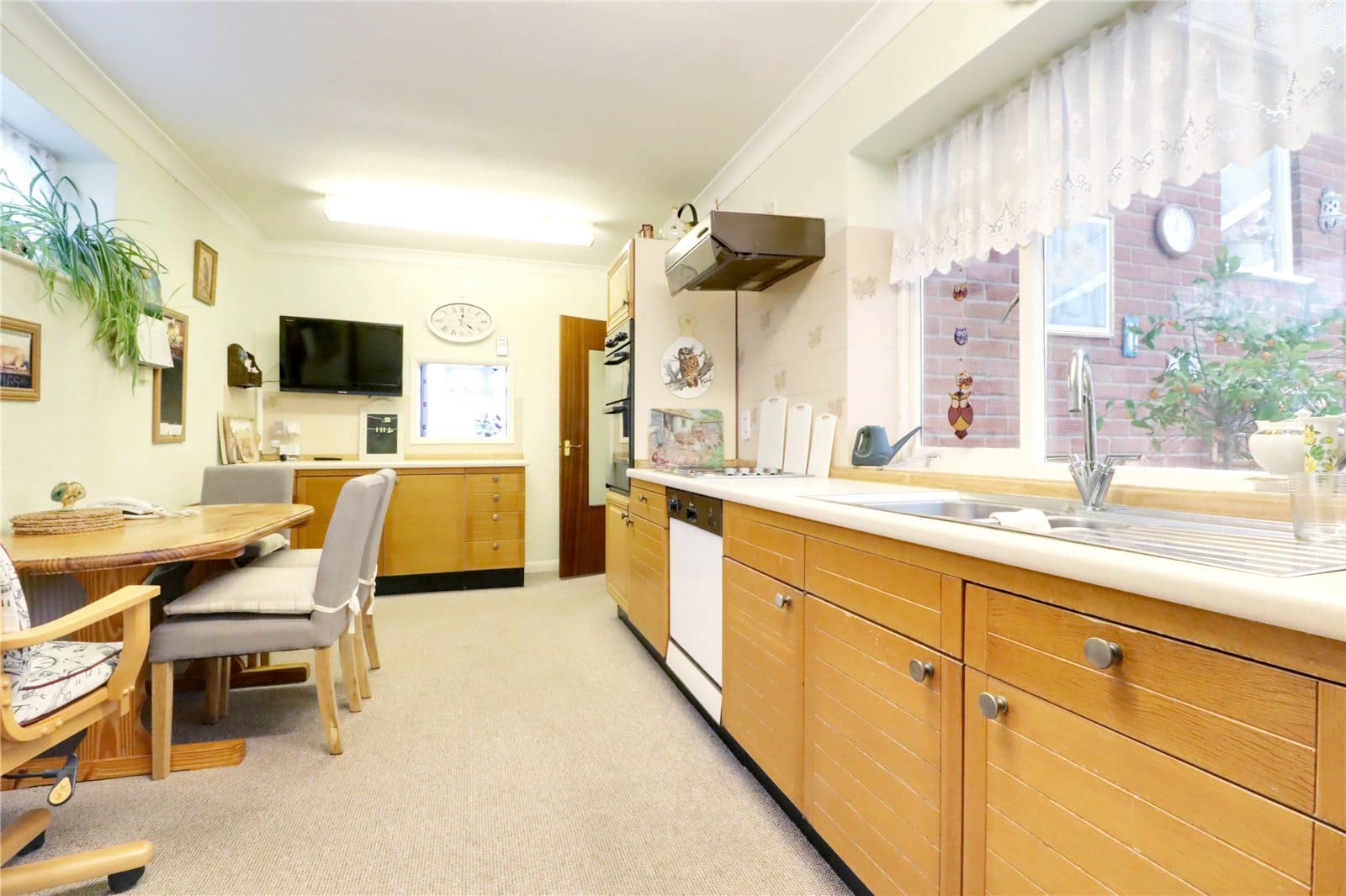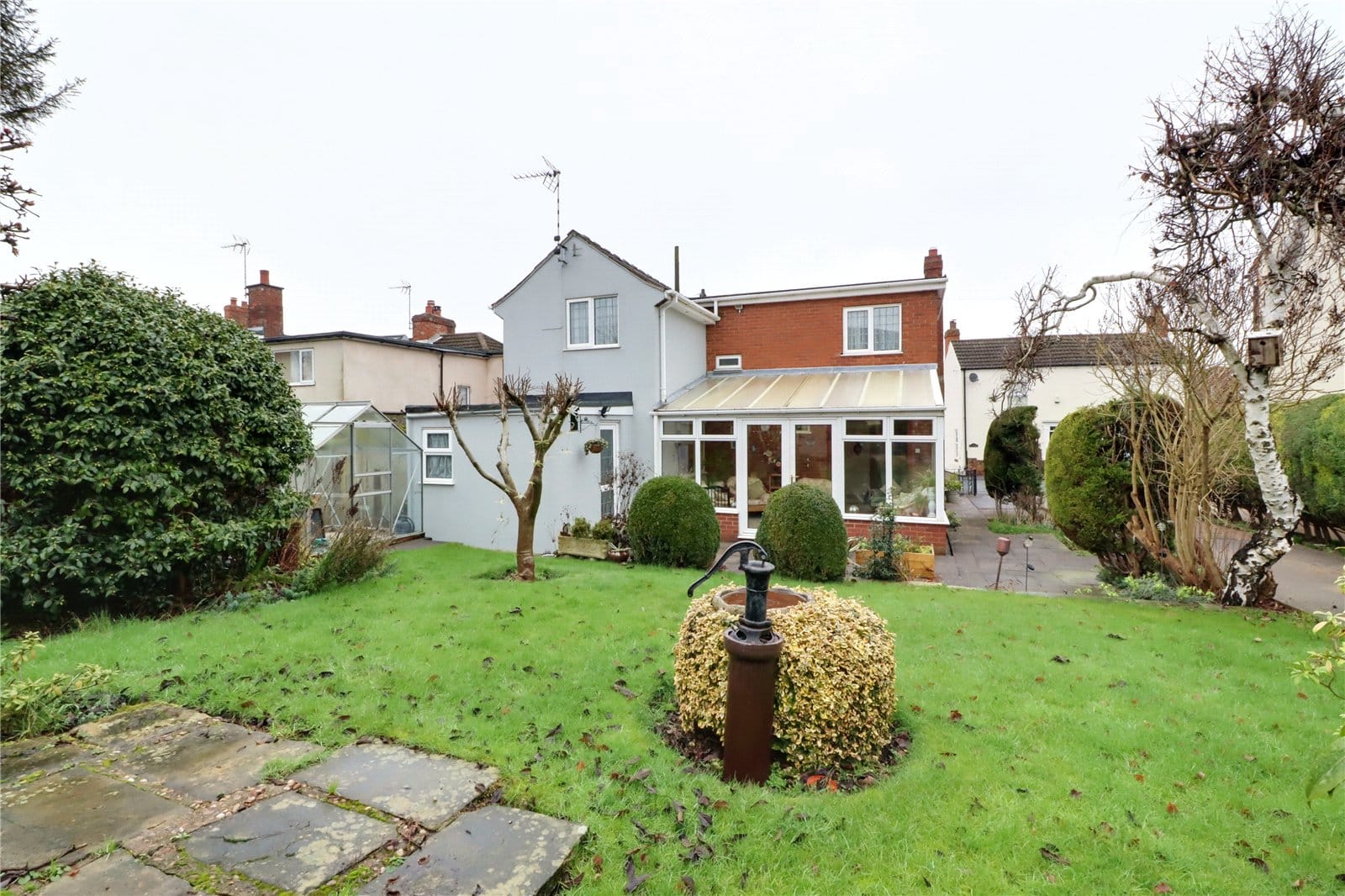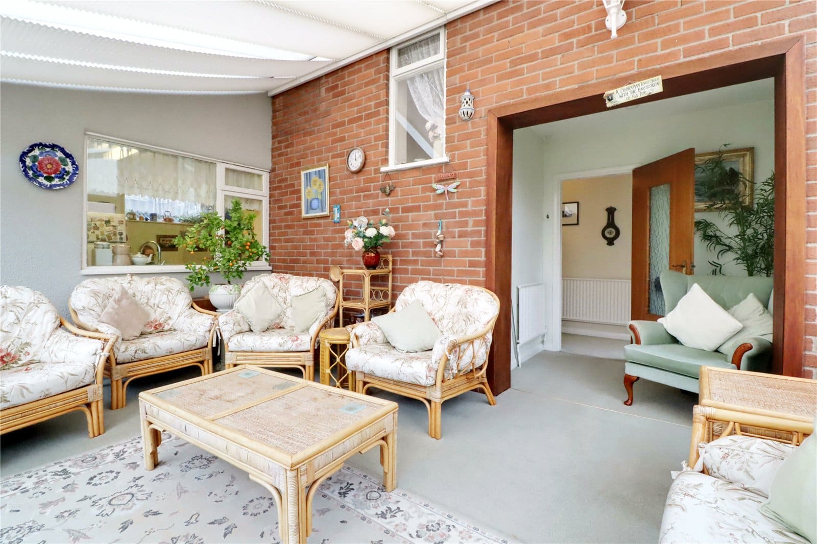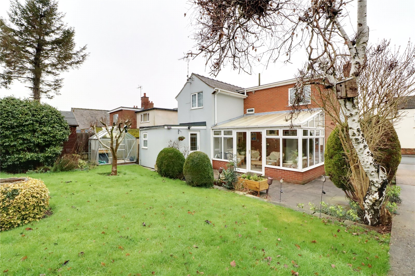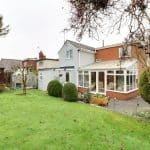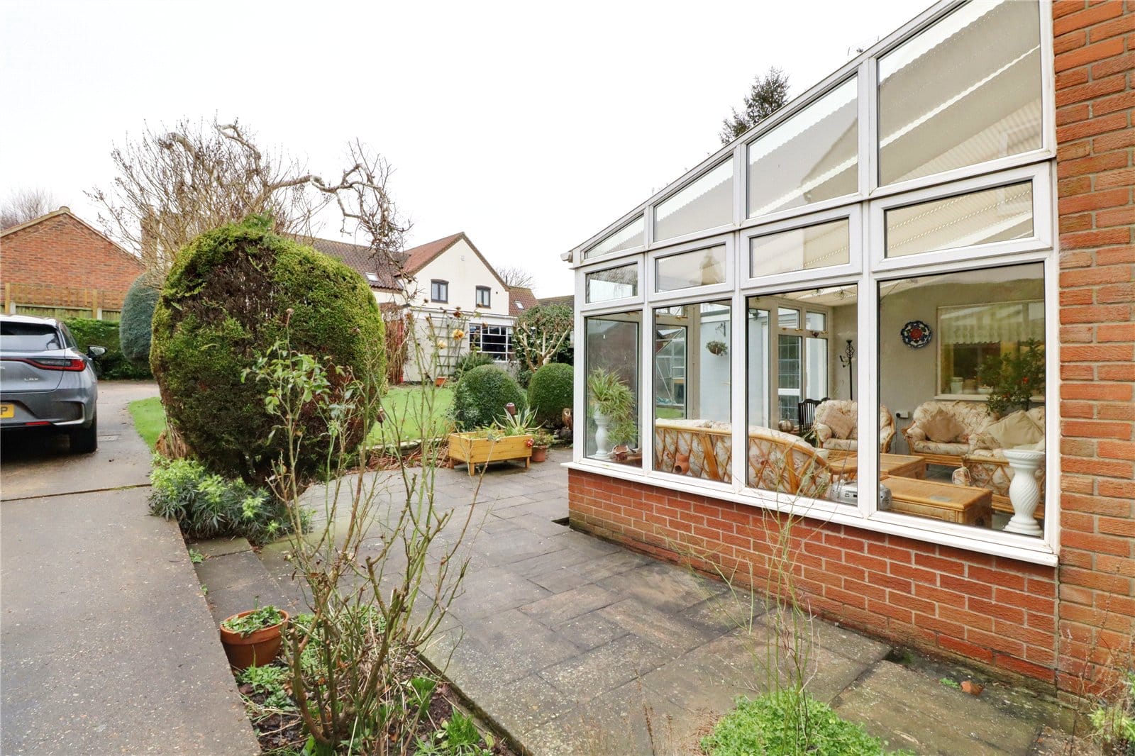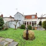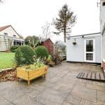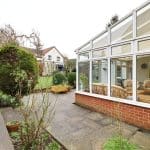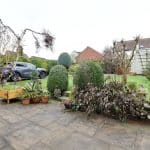 Located within walking distance of the town centre having a shallow front with brick boundary walls, a side driveway being concrete laid providing extensive parking for an excellent number of vehicles which continues to the garaging and provides central private lawned gardens with adjoining flagged seating areas benefiting from a southerly aspect and with planted borders.