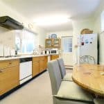 With side uPVC double glazed window, internal double glazed window looks through to the conservatory, a range of base, drawer and wall units with a patterned worktop operating a one and half bowl stainless steel bowl stainless steel sink unit with drainer to the side and block mixer tap, built-in four ring electric hob with extractor hood above and eye level double oven, built-in Neff dishwasher, large pantry, wall to ceiling coving, two fluorescent ceiling strip lights and internal panel and glazed door leads through to;