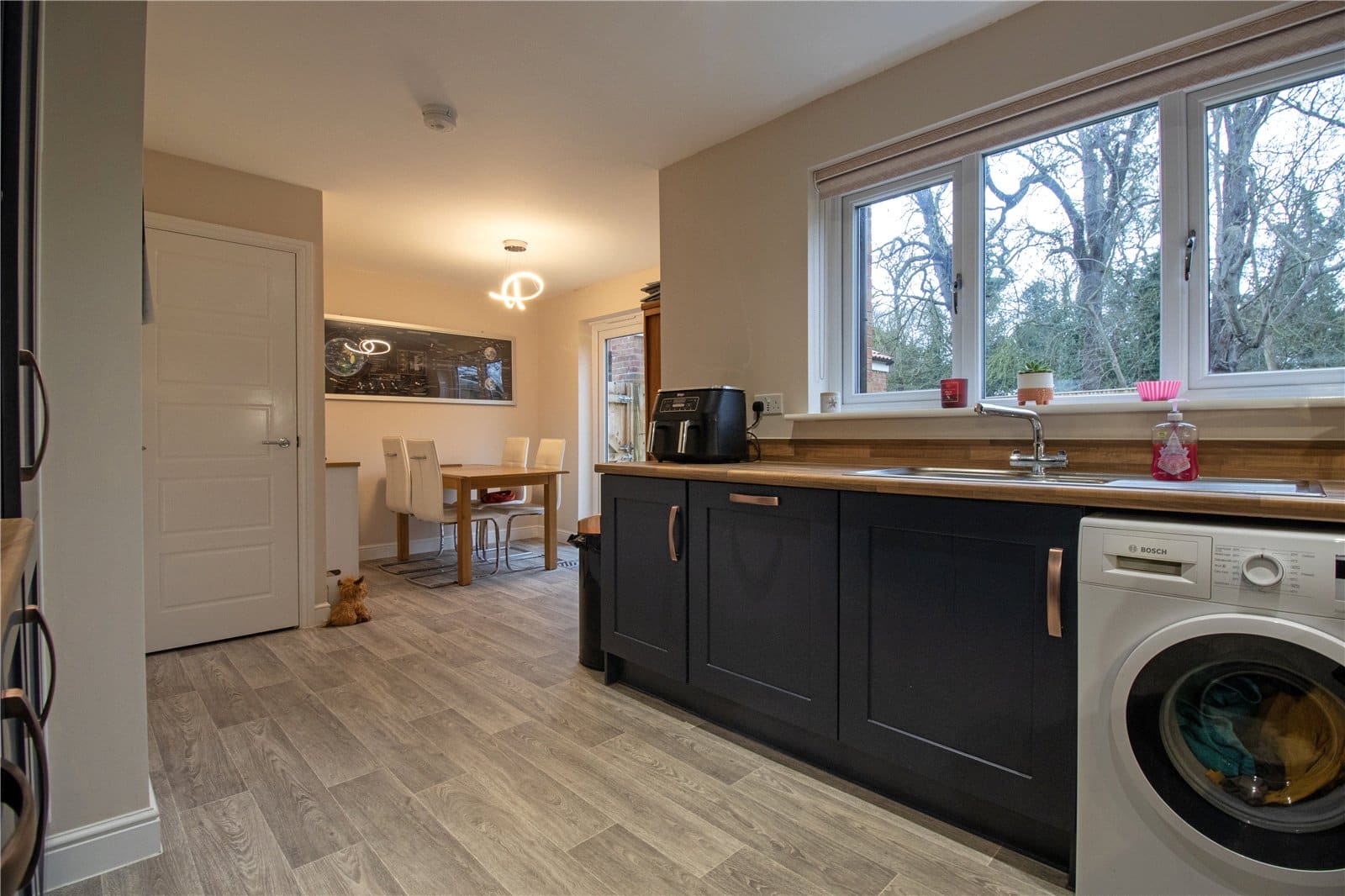 Internally, the home is thoughtfully designed to suit modern family life. A welcoming entrance hall sets the tone, leading to a generous and inviting lounge, ideal for relaxing evenings or entertaining guests. To the rear, the attractive open-plan kitchen diner forms the true heart of the home — a superb space for cooking, dining and socialising, with ample room for a family dining table and views across the garden. A convenient ground floor WC completes the downstairs accommodation.