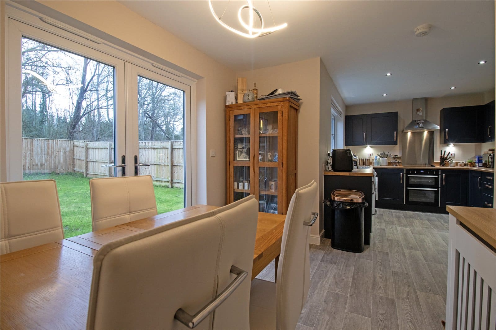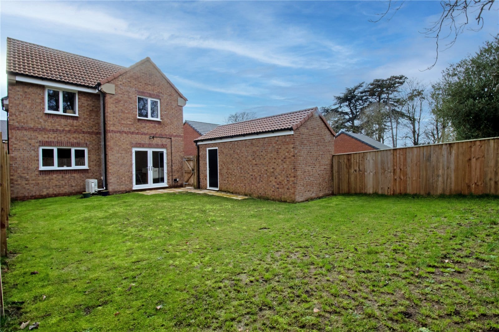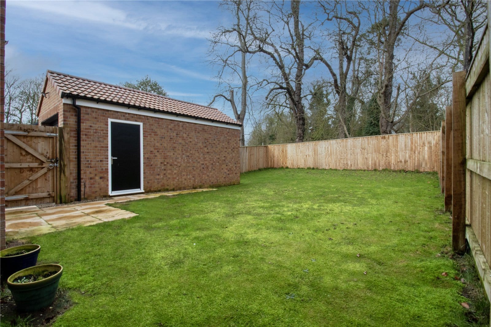 The enclosed rear garden is a particular highlight — generous in size, predominantly laid to lawn and offering a high degree of privacy. Backing onto woodland, it provides a peaceful and attractive outlook, creating a wonderful setting for outdoor entertaining, children’s play or simply enjoying the surrounding natural environment.