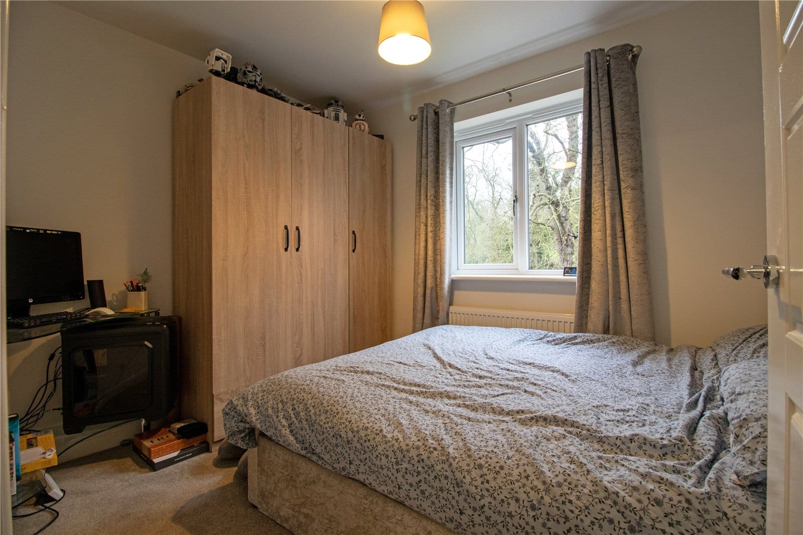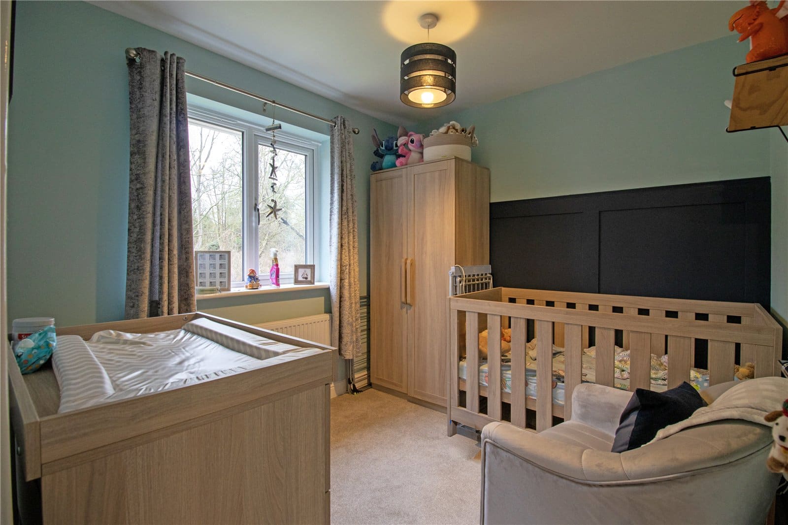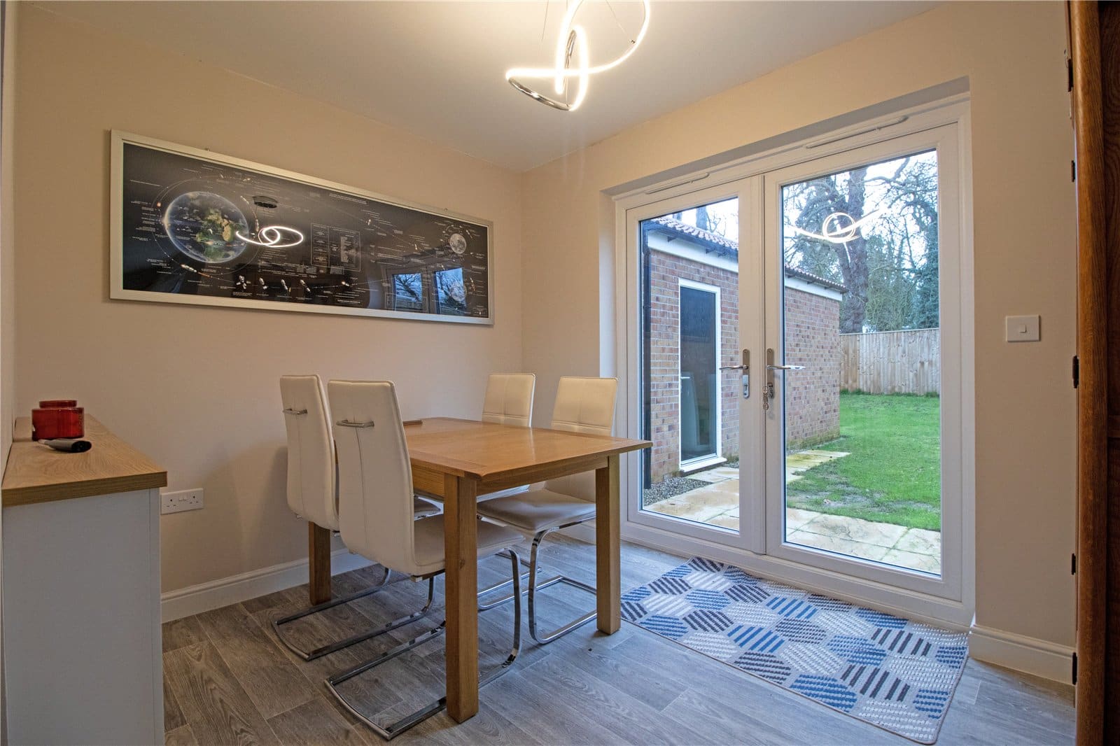 The enclosed rear garden is a particular highlight — generous in size, predominantly laid to lawn and offering a high degree of privacy. Backing onto woodland, it provides a peaceful and attractive outlook, creating a wonderful setting for outdoor entertaining, children’s play or simply enjoying the surrounding natural environment.