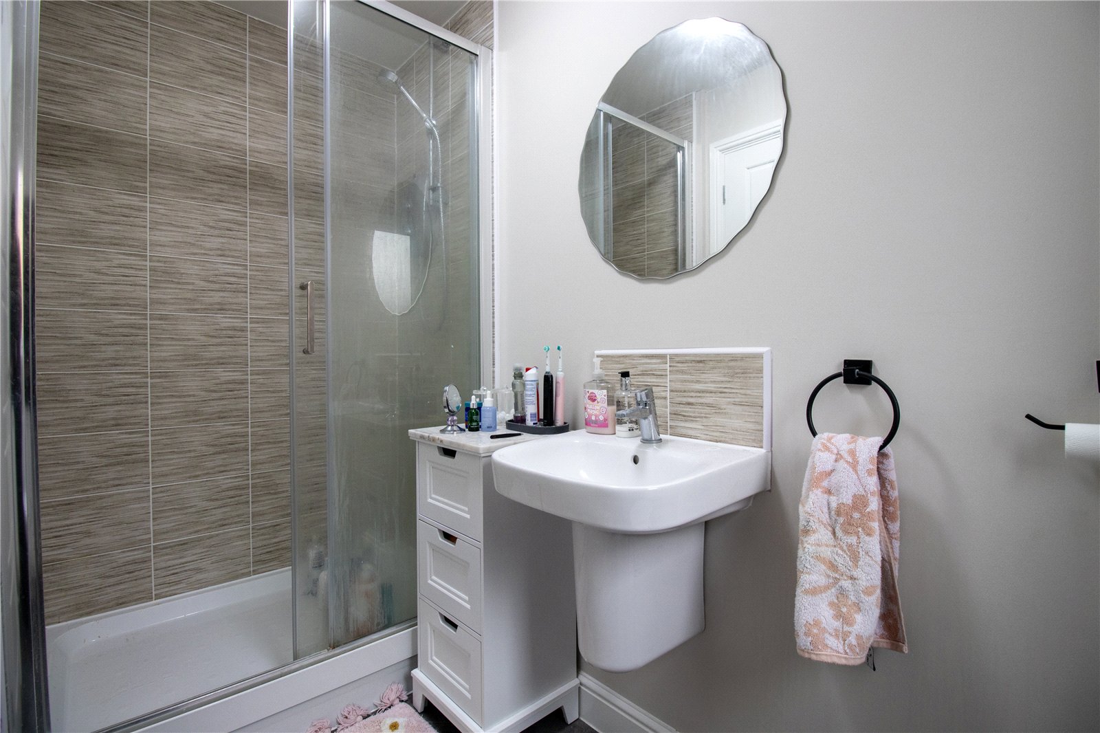 To the first floor, the property continues to impress with three well-proportioned double bedrooms. The principal bedroom benefits from fitted wardrobes and a stylish en-suite shower room, creating a comfortable and private retreat. The remaining bedrooms are served by a modern family bathroom suite, finished to a high standard.