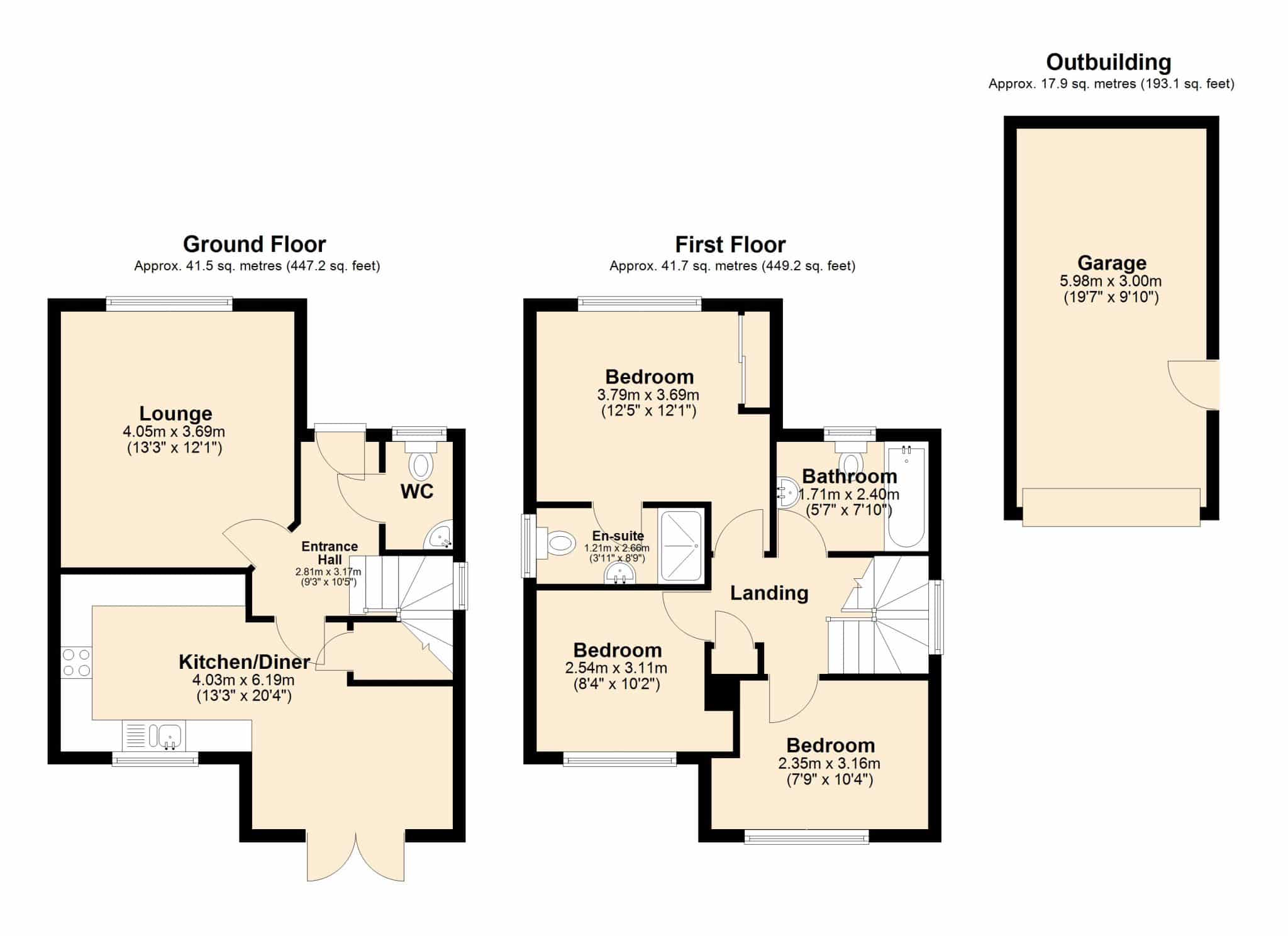 To the first floor, the property continues to impress with three well-proportioned double bedrooms. The principal bedroom benefits from fitted wardrobes and a stylish en-suite shower room, creating a comfortable and private retreat. The remaining bedrooms are served by a modern family bathroom suite, finished to a high standard.