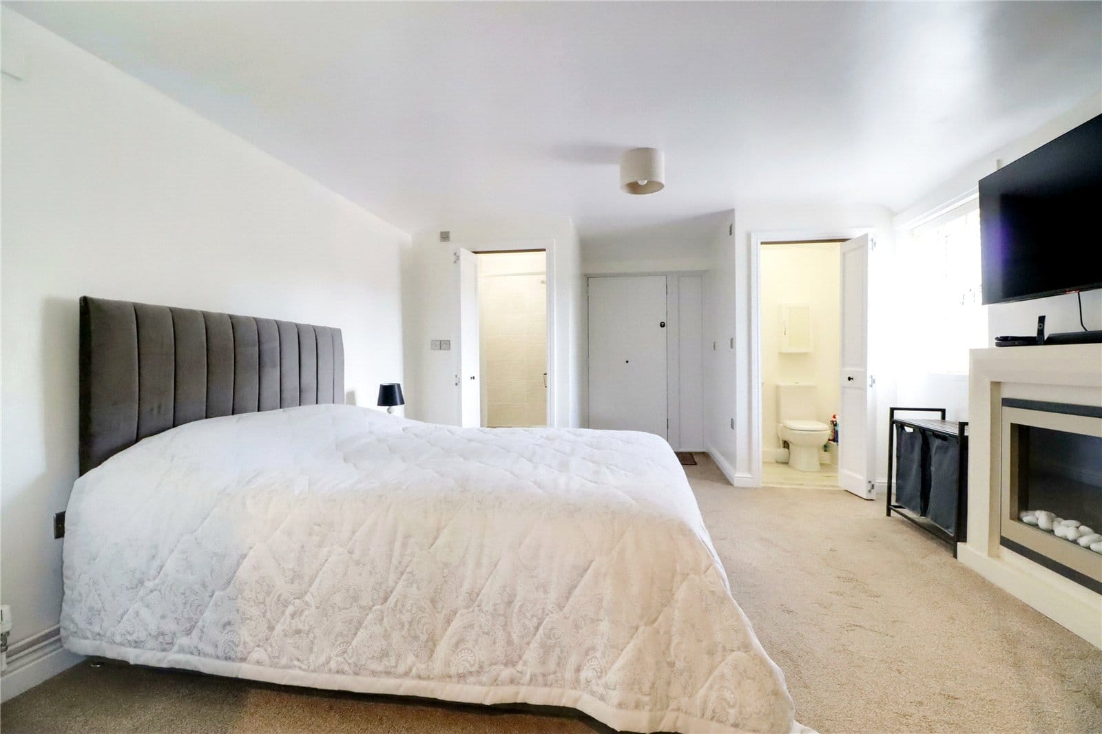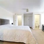 Twin front uPVC double glazed windows, fitted wardrobes and doors through to a dressing room and en-suite bathroom.