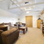 Front composite entrance door with adjoining uPVC windows, quarry tiled flooring, vaulted ceiling and internal stable style door leads through to;