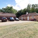 The property enjoys the benefit of a quadruple garage block with a central breeze block divider creating two double garages with both having twin front doors.