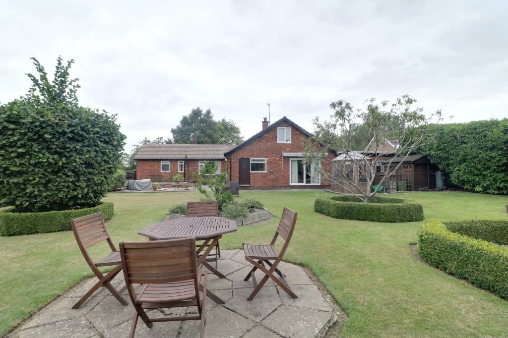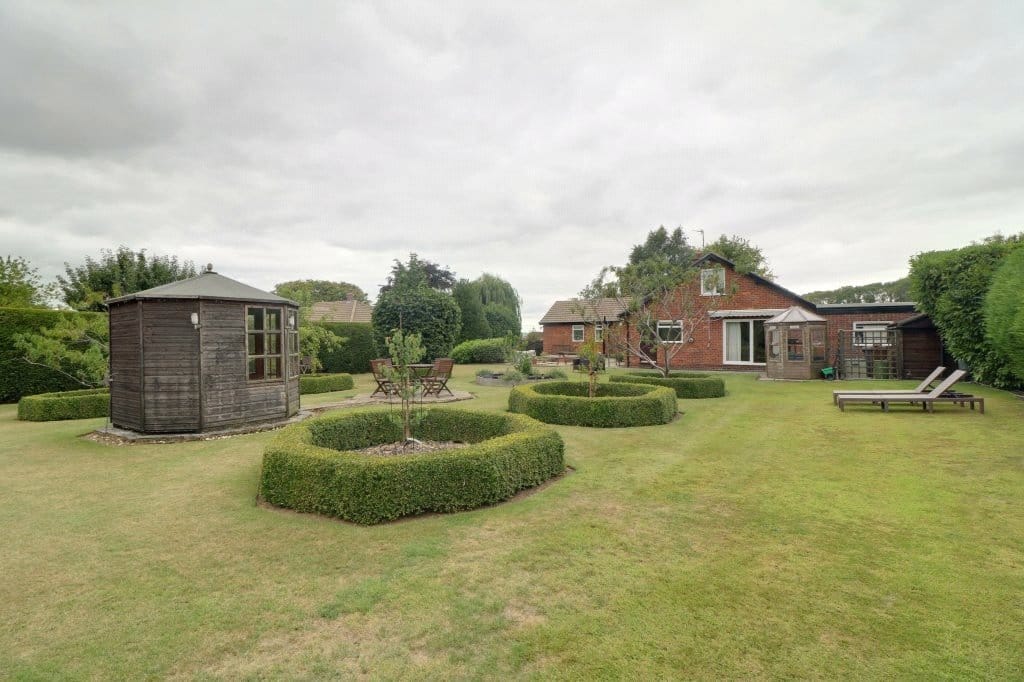 Occupying a substantial mature private plot that comes principally lawned with a variety of trees, shrubs and boundary hedging. A fantastic patio entertainment area leads out from the kitchen, ideal for sitting and relaxing in the summer months. To the rear of the garden enjoys a generous orchard area with a range of vegetable patches and fruit trees, along with a further storage garage. Access leads down either side of the bungalow to a large driveway allowing ample parking for multiple vehicles with a direct approach to a spacious double garage.