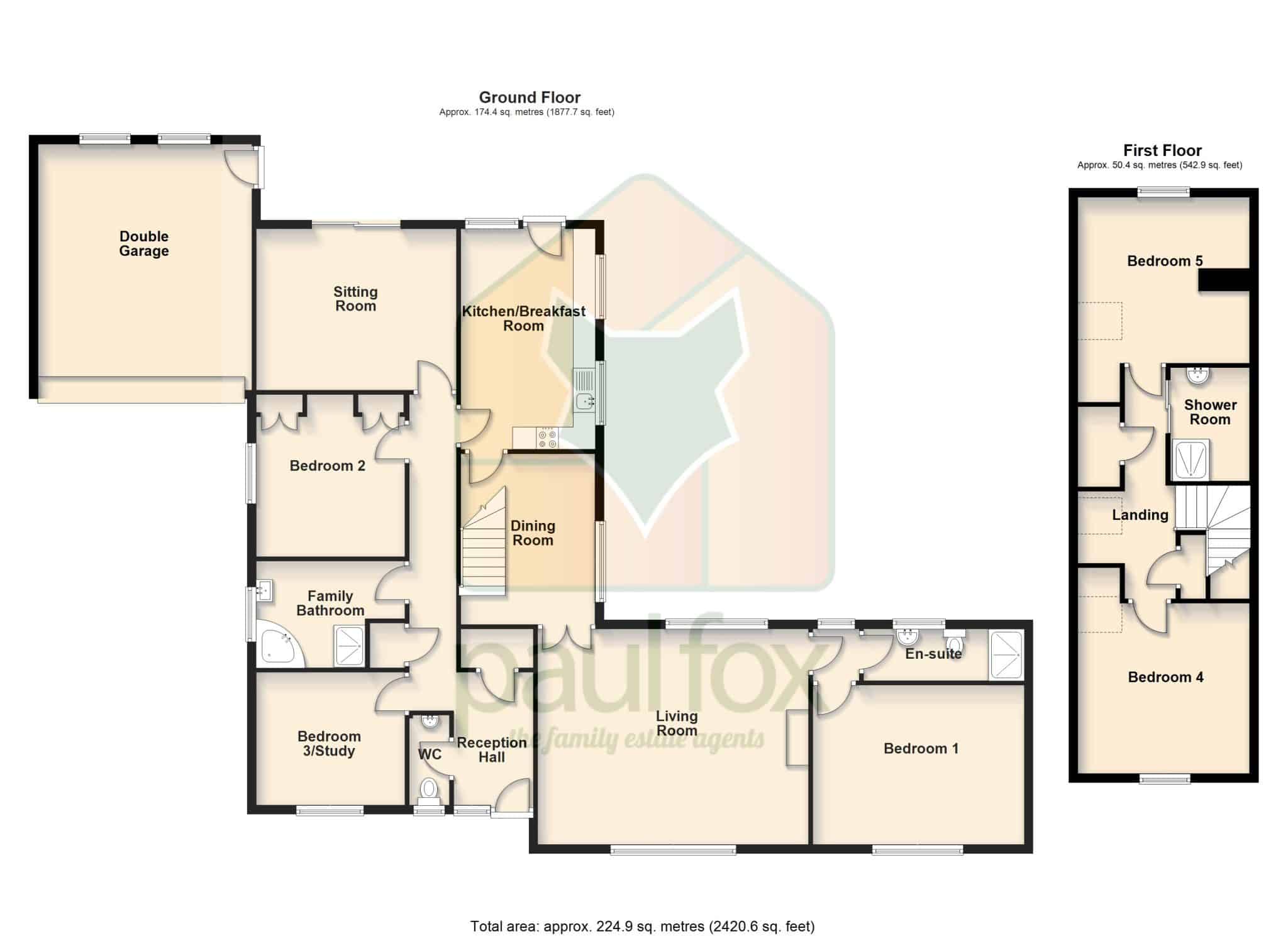 Occupying a substantial mature private plot that comes principally lawned with a variety of trees, shrubs and boundary hedging. A fantastic patio entertainment area leads out from the kitchen, ideal for sitting and relaxing in the summer months. To the rear of the garden enjoys a generous orchard area with a range of vegetable patches and fruit trees, along with a further storage garage. Access leads down either side of the bungalow to a large driveway allowing ample parking for multiple vehicles with a direct approach to a spacious double garage.