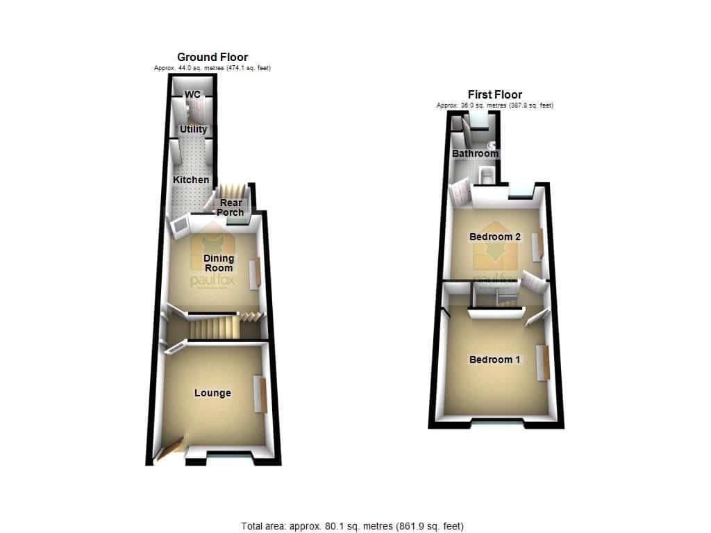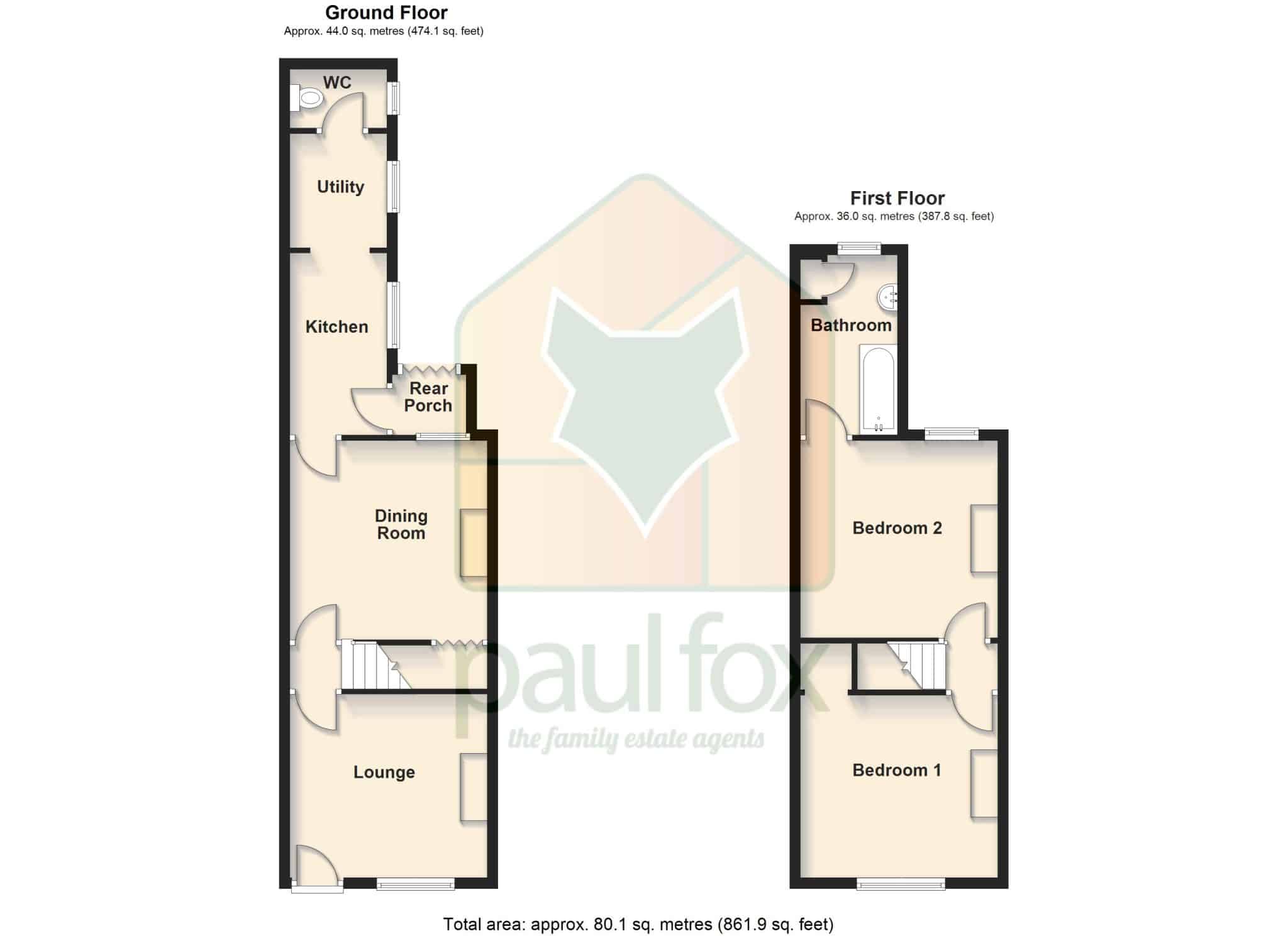 The accommodation briefly comprises: a welcoming lounge, separate dining room, a modern fitted kitchen, and a contemporary shower room on the ground floor. To the first floor, you'll find two generously sized double bedrooms, both serviced by a stylish bathroom suite.