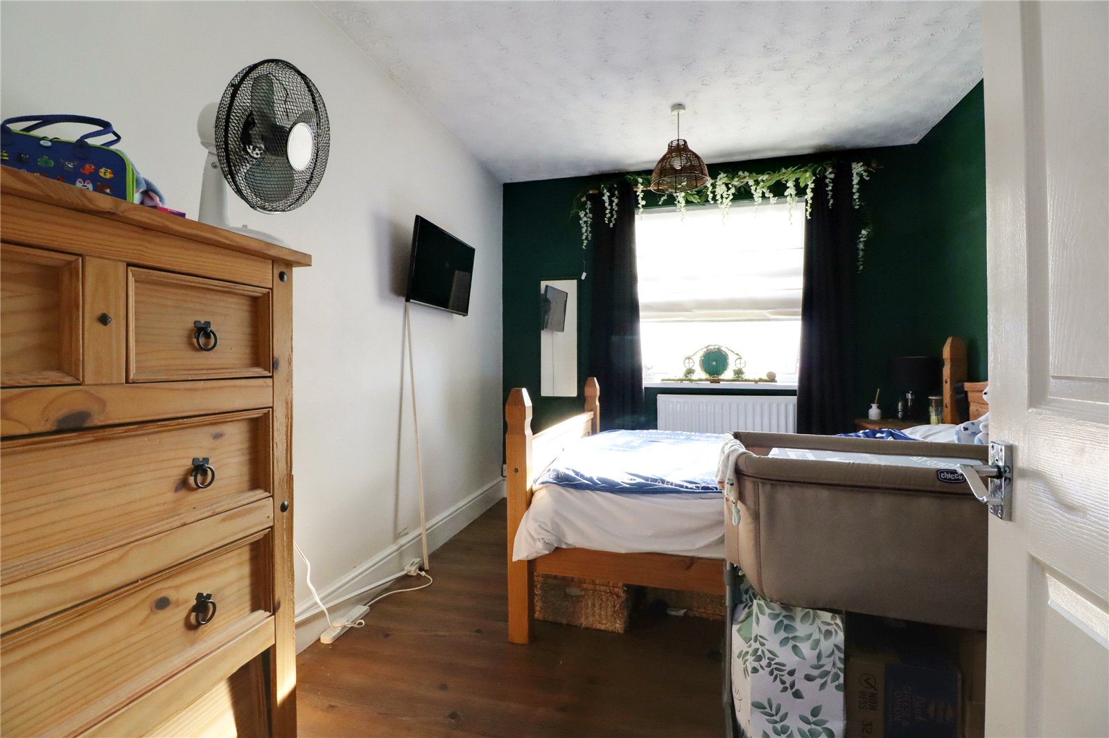 Front uPVC double glazed entrance door, twin uPVC double glazed windows. The kitchen area enjoys stylish gloss black range of low level units, drawer units and wall units with brushed aluminium style pull handles, complementary butcher block style rolled edge working top surface with tiled splash backs incorporates a single stainless steel sink unit with drainer to the side and block mixer tap, built-in four ring gas hob with oven beneath and overhead canopied extractor, plumbing and space for appliances, ceramic tiled flooring, wall to ceiling and a staircase leads to the first floor accommodation with open spell balustrading, TV point and wall to ceiling coving.
