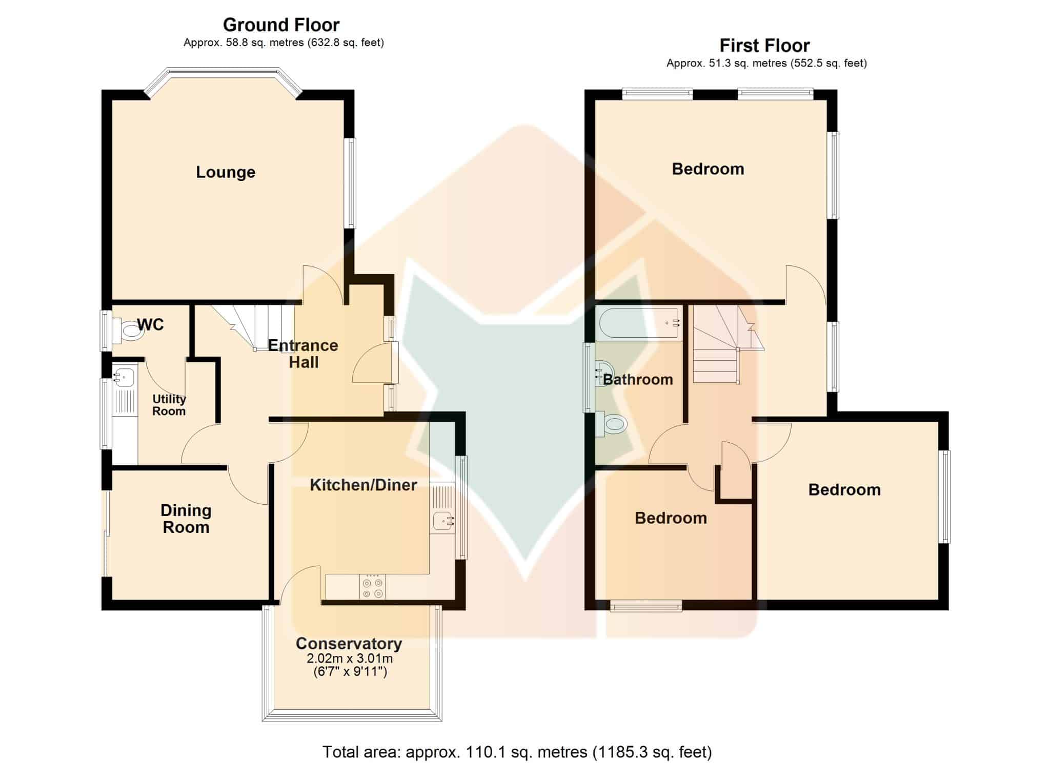 The home briefly comprises an inviting entrance hall, a spacious lounge with dual-aspect views, a dining room, a fitted dining kitchen, utility room, conservatory, and a ground-floor WC. Upstairs, there are three generous bedrooms served by a family bathroom suite.