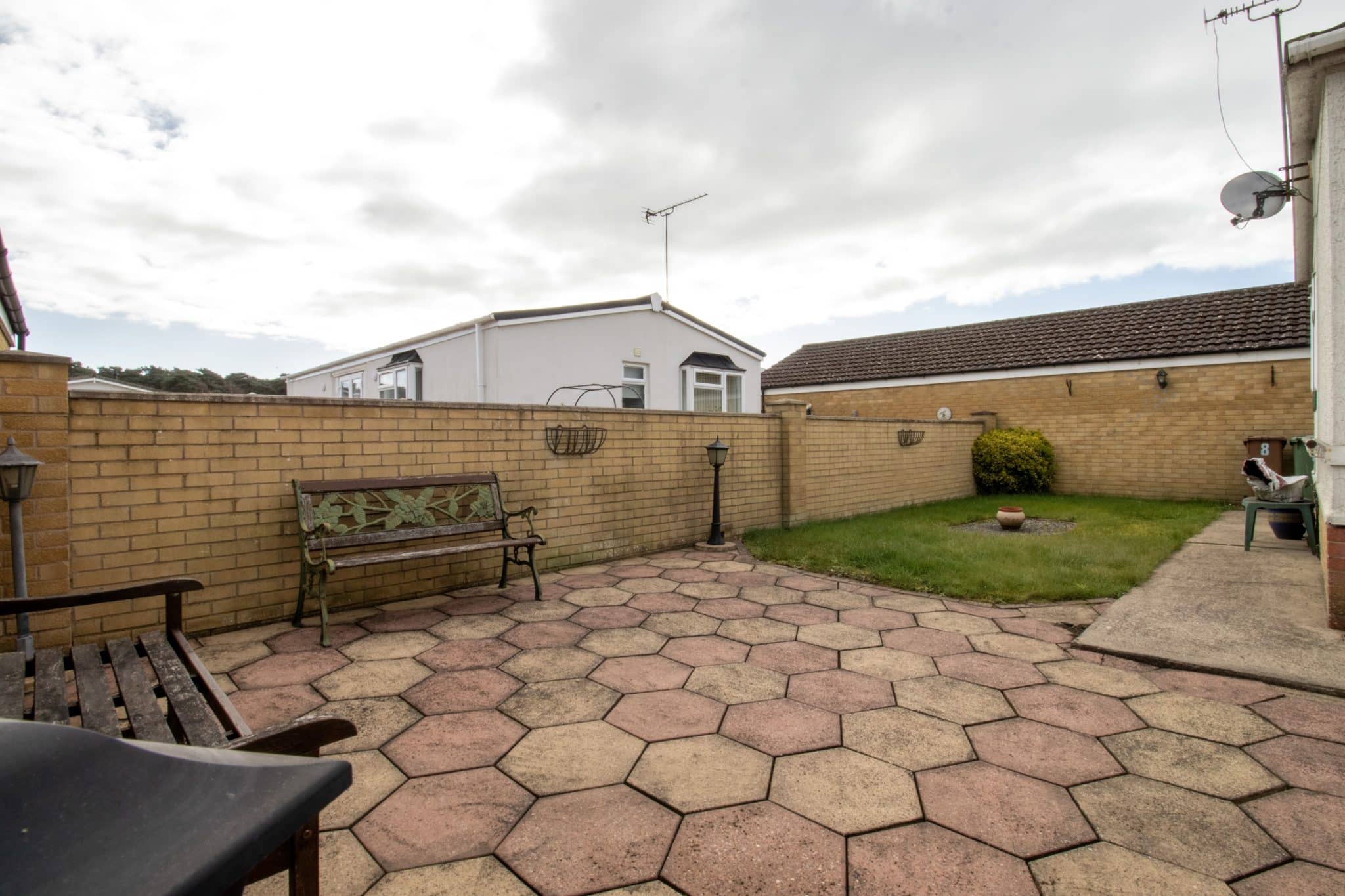 Externally, the property sits on a generous plot, featuring a driveway that provides ample off-road parking and access to a detached garage. The garden is designed for low maintenance, with paved areas ideal for relaxing and enjoying the sunshine, alongside lawned sections to the front and side.