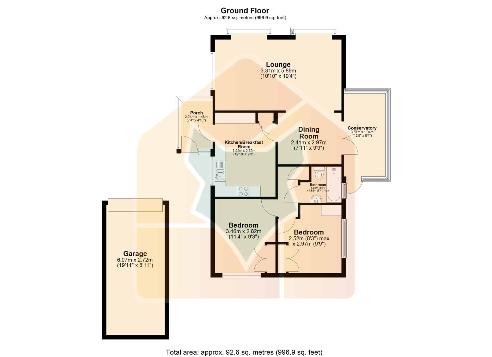 Porch 7' 3" x 4' 10" (2.22m x 1.48m)