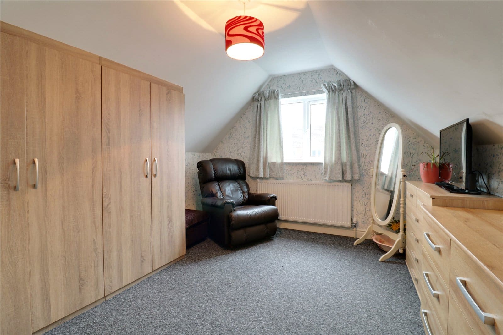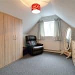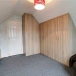 With a front uPVC double glazed window, TV input, stylish bank of corner fitted wardrobes with brushed aluminium style pull handles and oak style fronts.