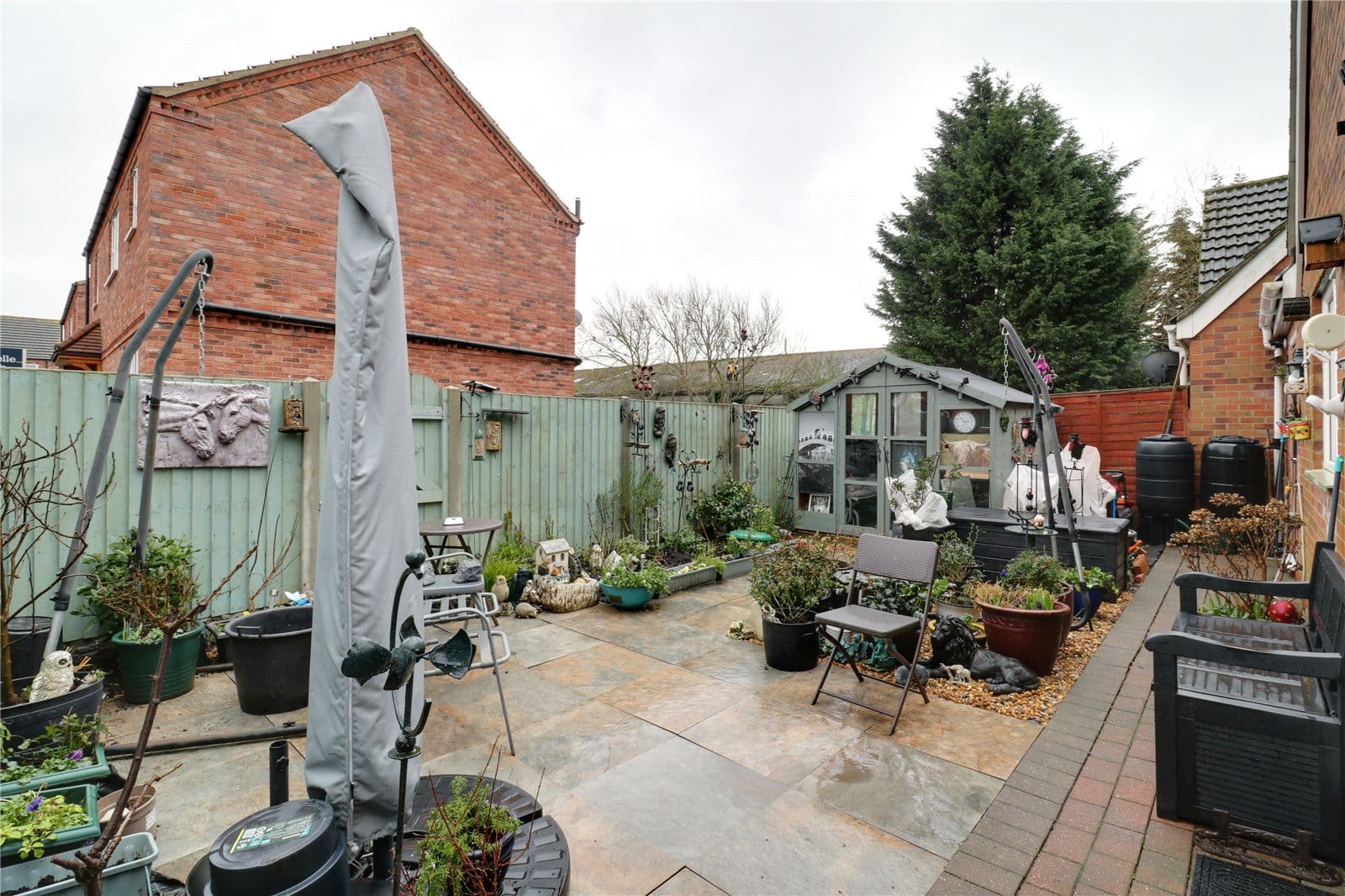 To the rear of the property provides an enclosed low maintenance landscaped garden with attractive Indian sandstone effect flagged patio area with surrounding planted borders with further decorative gravelled borders, surrounding secure fencing, a timber storage shed which is on a 8x8 solid base, a block paved pathway provides access to the side of the property via a secure side gate allowing further access to the attached single garage. To the front of the property provides a further block paved driveway allowing off street parking and leads to the attached single garage.