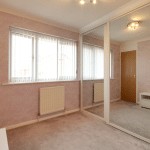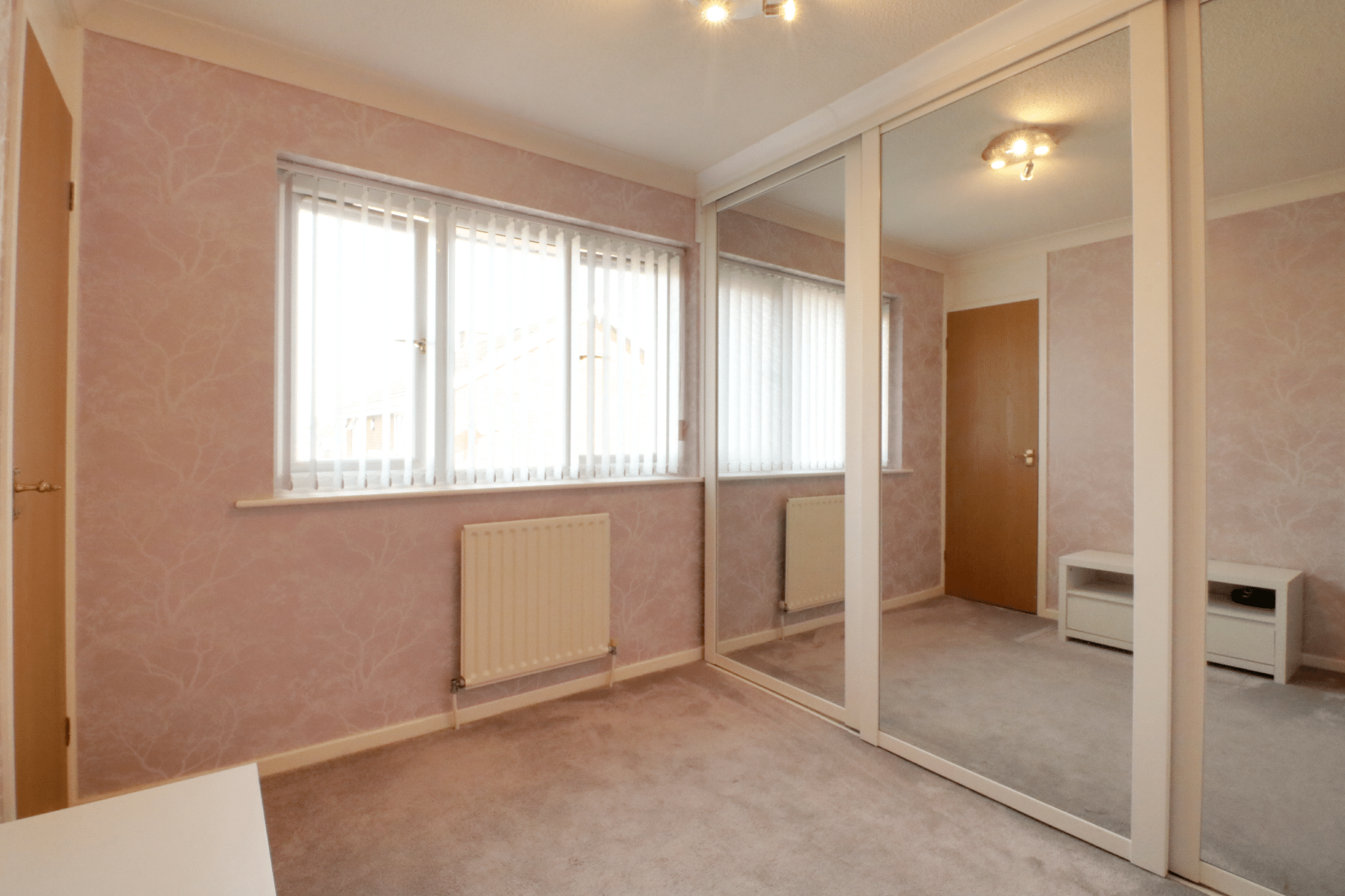 Enjoying a rear uPVC double glazed window, a bank of attractive sliding fitted wardrobes with mirrored fronts, wall to ceiling and a built in storage cupboard.
