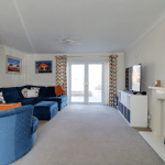Enjoying a dual aspect with front uPVC double glazed window and rear uPVC double glazed French doors leading out to the decked seating area, TV input, wall to ceiling coving, a gas coal effect fire with a projecting marbled hearth and matching backing surround and mantle and an internal door which allows access through to the kitchen.
