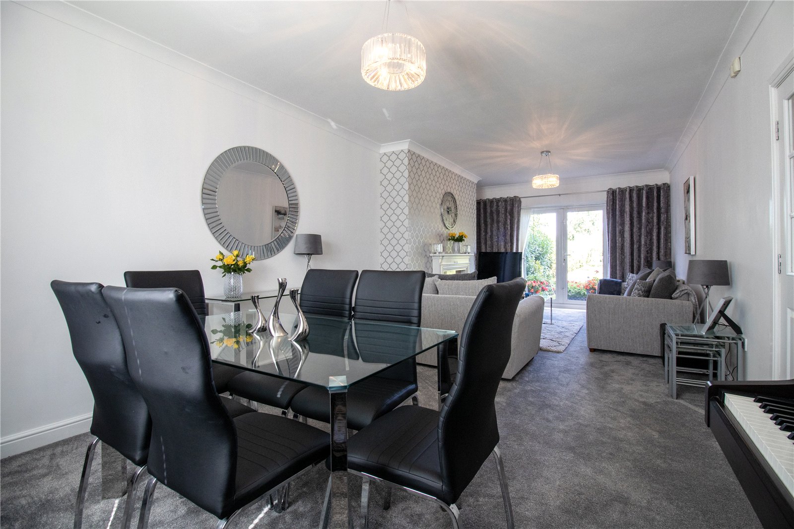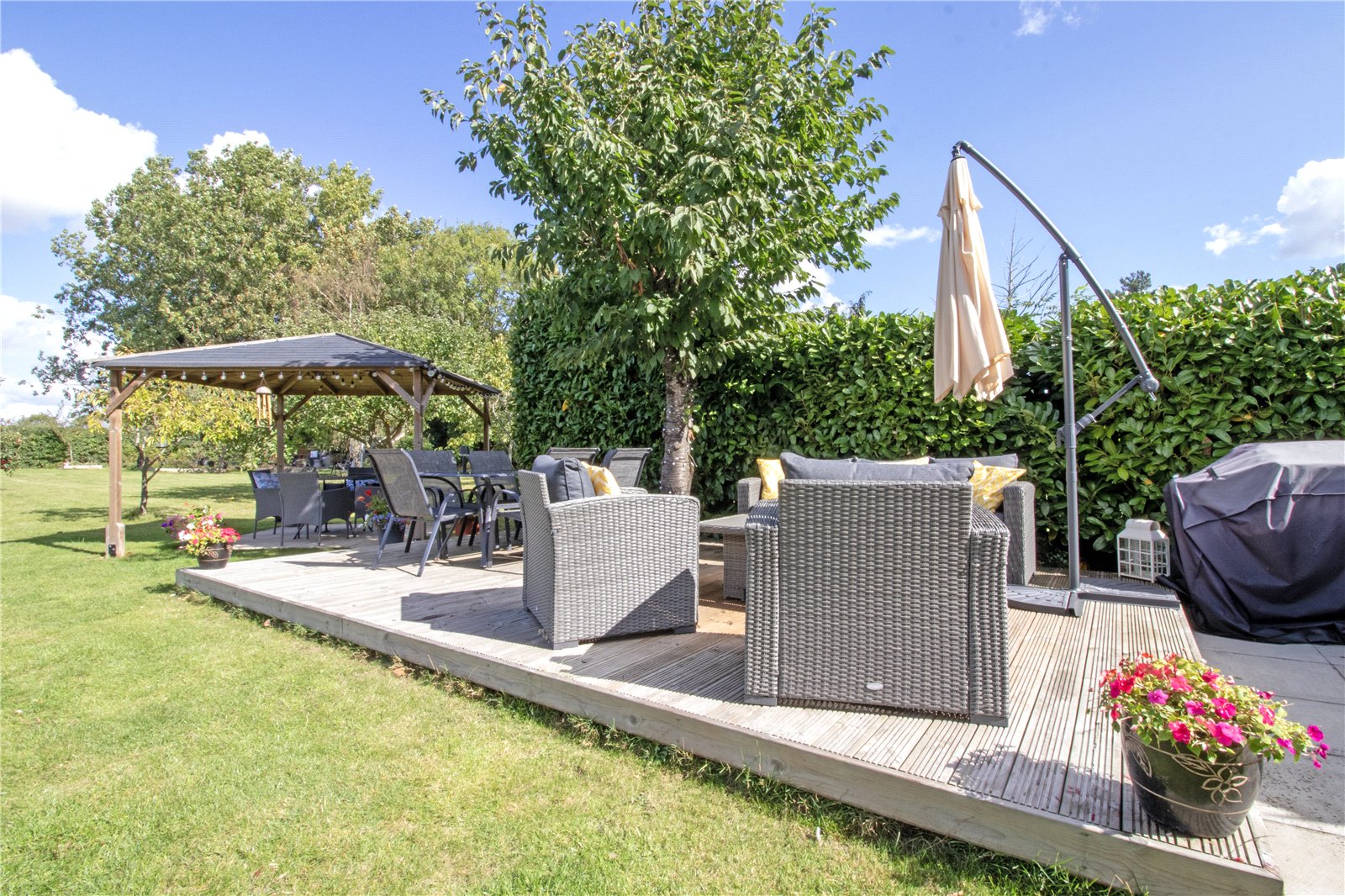 Externally, the property enjoys a quiet cul-de-sac setting with a lawned frontage and a driveway providing ample off-road parking and access to the double garage, which is equipped with power and lighting. To the rear, the enclosed garden extends to approximately 0.36 acres. Private and generous in size, it is mainly laid to lawn with multiple seating and entertaining areas, perfectly positioned to make the most of the sun throughout the day.
