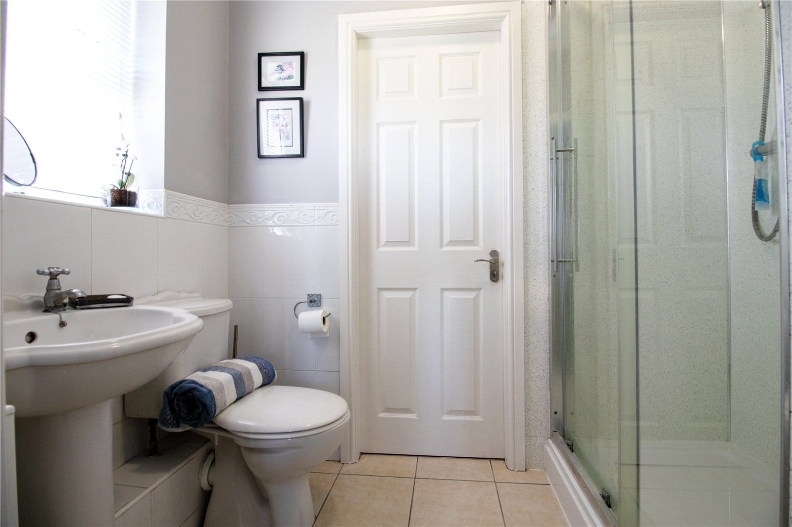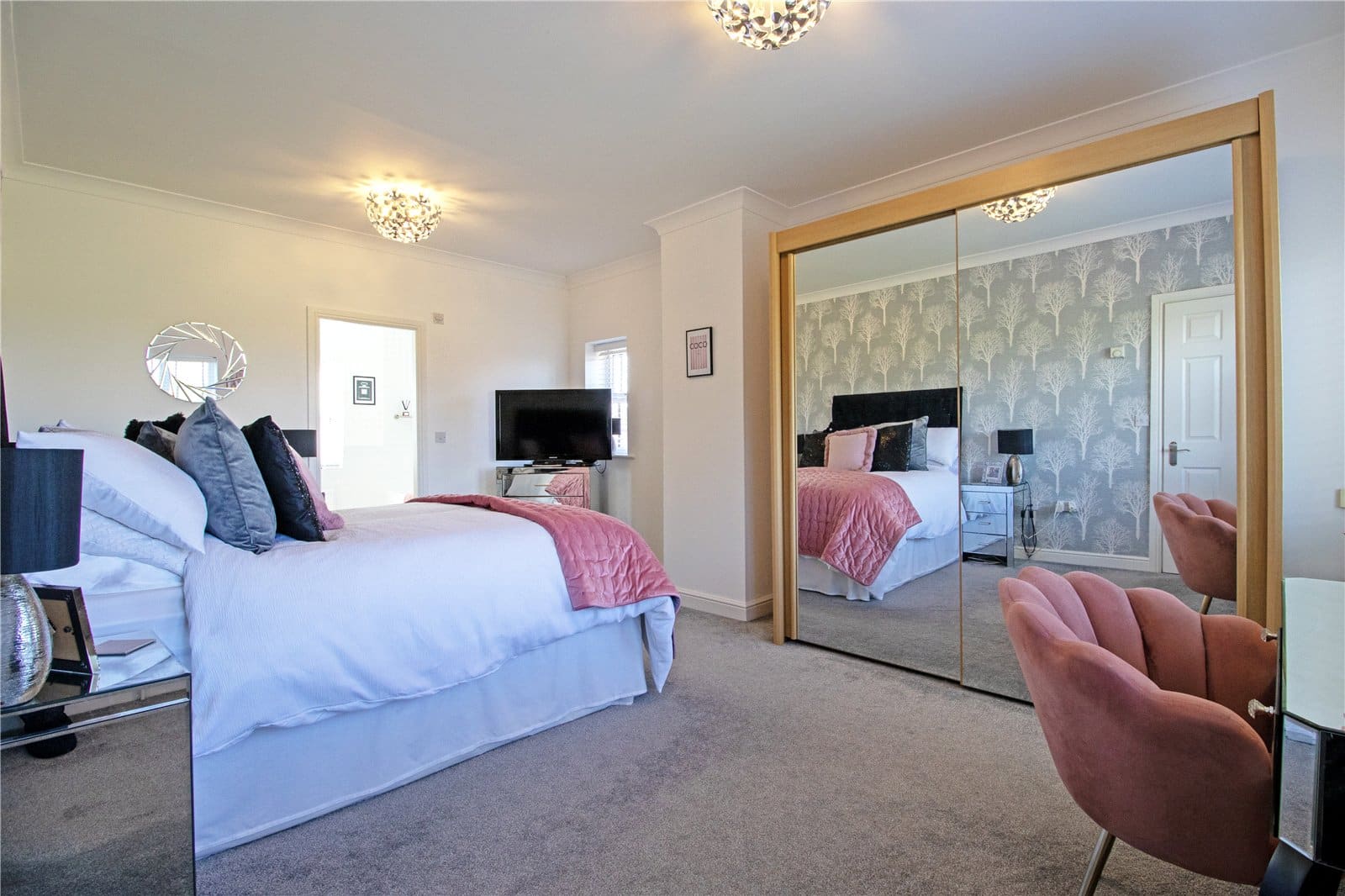 The second floor hosts three double bedrooms, including the grand master suite. Two of the bedrooms benefit from their own en-suites, while all are served by a stylish four-piece family bathroom, making this level both practical and luxurious.