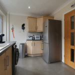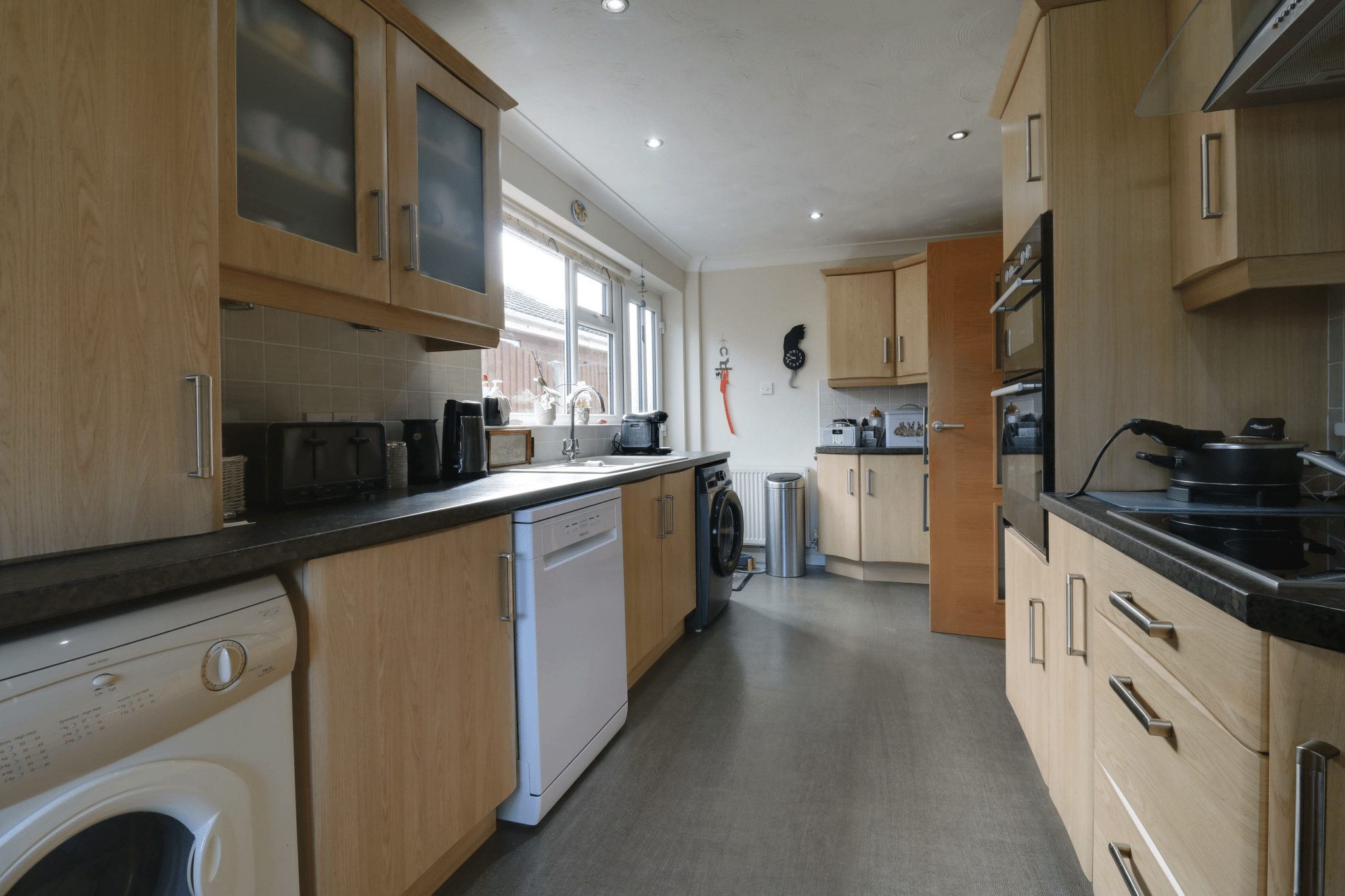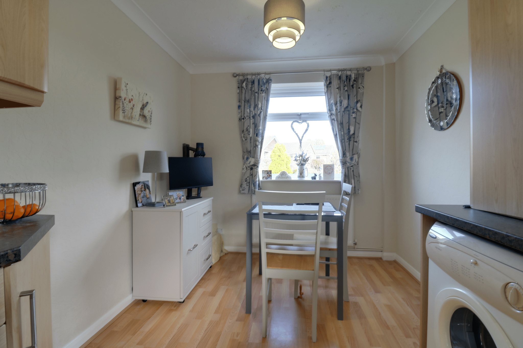 Including a dual aspect with front and side uPVC double glazed windows with a further side uPVC double glazed door allowing access to the side of the bungalow. The kitchen includes a range of pine fronted low level units, drawer units and wall units with glazed fronts to the wall units and brushed aluminium pull handles and a patterned working top surface incorporating a one and a half ceramic bowl unit with block mixer tap and drainer to the side with tiled splash backs, plumbing for a washing machine, plumbing for a dishwasher, space for an under counter tumble dryer, four ring electric hob with overhead chrome canopied extractor fan with an adjoining hot point electric oven with grill above, space for a tall American style fridge freezer, space for a microwave, inset ceiling spotlights, ceiling input and a laminate flooring to the dining area with cushioned flooring to the kitchen.
